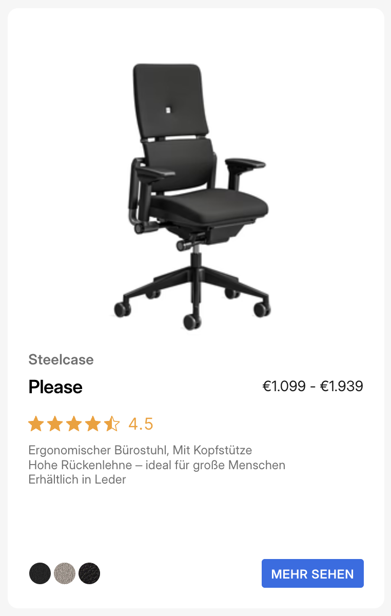 >>7639138 Aeron size C практически всегда только под заказ, как и size A. Помимо Aeron с твоими параметрами стоит рассмотреть Mirra 2, можно Embody (если нарулишь версию Gaming - ещё лучше). Из Steelcase безопасным вариантом будет Gesture. Ergohuman Elite 2 (разные версии бывают) тоже очень хорош для богатырей.
