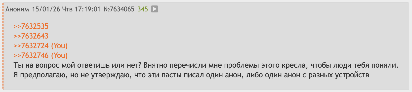 >Ты серишь тут этим креслом постоянно нахуй. Каким? Где? У тебя всё хорошо?