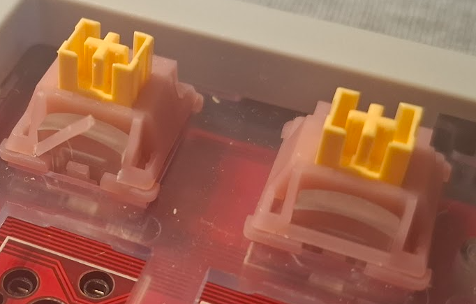 Мои свитчи в 2025м (более-менее в порядке от самых понравившихся): Gateron Type R - тактильные переключатели с коротким ходом, но очень приятные по ощущениям и звуку, странные и интересные. HMX XinHai - тяжелые линейные переключатели, которые очень приятно нажимаются и почти без люфтов, неплохо звучат. Akko Rosewood - офигенно звучащие и ощущающиеся линейные звучи, самые thocky свитчи после электроемкостных. Akko Bittersweet - тактильная версия Rosewood, очень похожи на коричневые, но с более выраженной тактильностью, очень неплохи. Akko Cilantro - Тактильные свитчи, где тактильность наступает уже в самом начале, производитель HMX, приятно звучат. KTT Blueberry IceCream - из клавиатуры Epomaker Galaxy 65, стандартные линейные, набирать легко и приятно. Huano Sakura Odyssey - из клавиатуры Galaxy 70, очень похожи на какие-нибудь HMX, офигенно ощущаются и звучат именно в этой клавиатуре. KTT Kang White v3 - начинаются как среднего усилия линейные, но в самом низу очень тяжелые, довольно тихие, но чего-то не хватает. Outemu Creamy Yellow Pro - бесшумные тактильные свитчи, максимально комфортные для набора текста. Outemu Silent Peach v3 - Самые комфортные линейные бесшумные свитчи, пользую постоянно на работе. Chosfox Yichu - Линейные свитчи с длинным ходом 4.0 мм, но немного проигрывают по ощущениям Silent Peach, возможно зависит от клавиатуры. Epomaker Zebra - Нормальные линейные переключатели, нормально ощущаются, нормально звучат, но ничего особенного. MMD Princess V4 - тяжелые тактильные свитчи, должны были быть приятными, но короткий ход и жесткий боттом аут делают их некомфортными. Huano Sakura - приятно ощущаются, но слишком легкие. Outemu Silent Lime - Тактильные свитчи, но слишком невыразительные, легкие и поэтому неинтересные. Epomaker Wisteria - Нормальные линейные свитчи, из-за большого люфта стема очень посредственные.