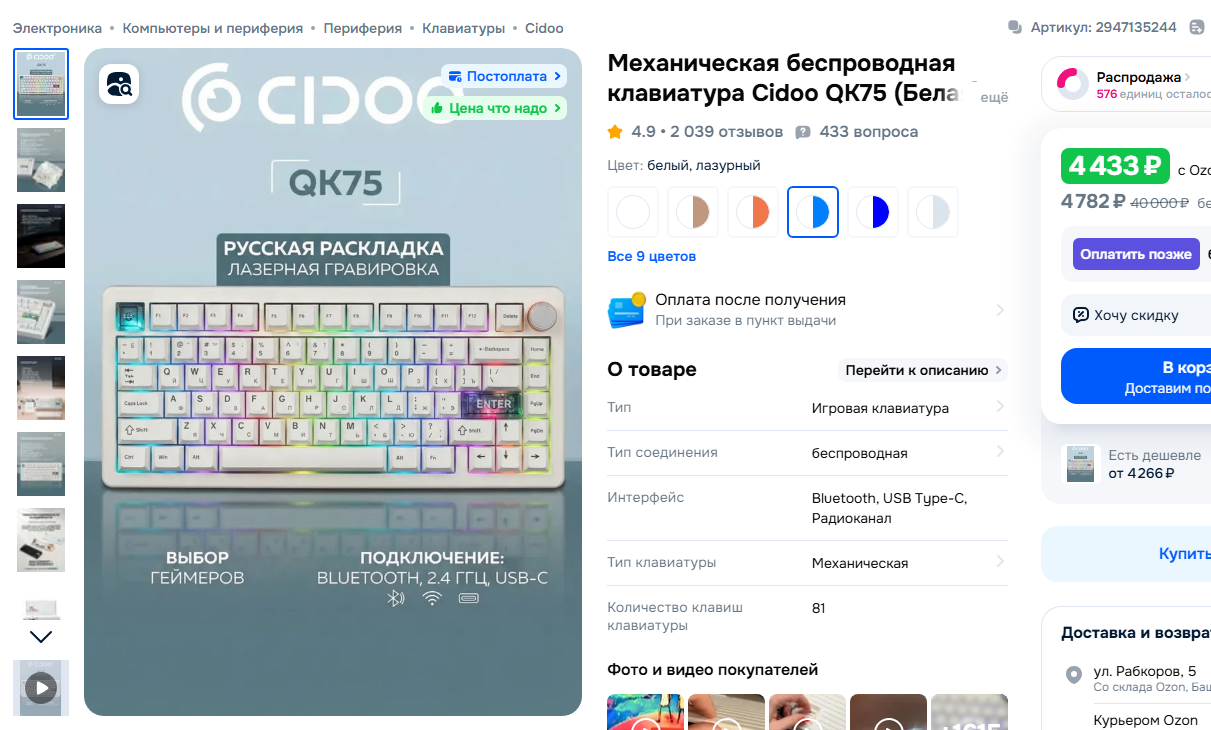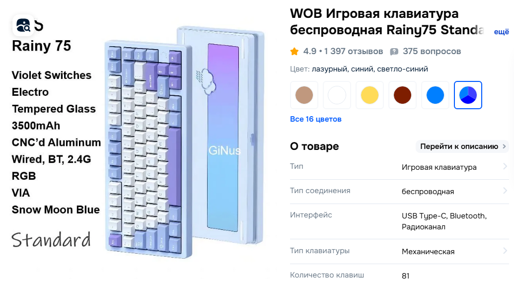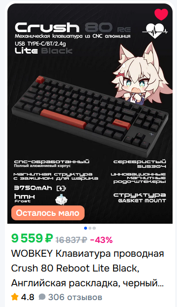 короче купил аулу ф75, оказалась по итогу хуетой, потому что в любимых ТАНКАХ и не только по беспроводу работала с ебаными задержками почти всегда, вернул, позвонили с ям и предложили по цене аулы (4200) любую другую клаву до 8к. Выбирал чтобы была не аула/кидо/ажаз, потому что это одно и то же (epomaker), выбрал какую то хуйню от Haier. Кто-то шарит это говно или норм?