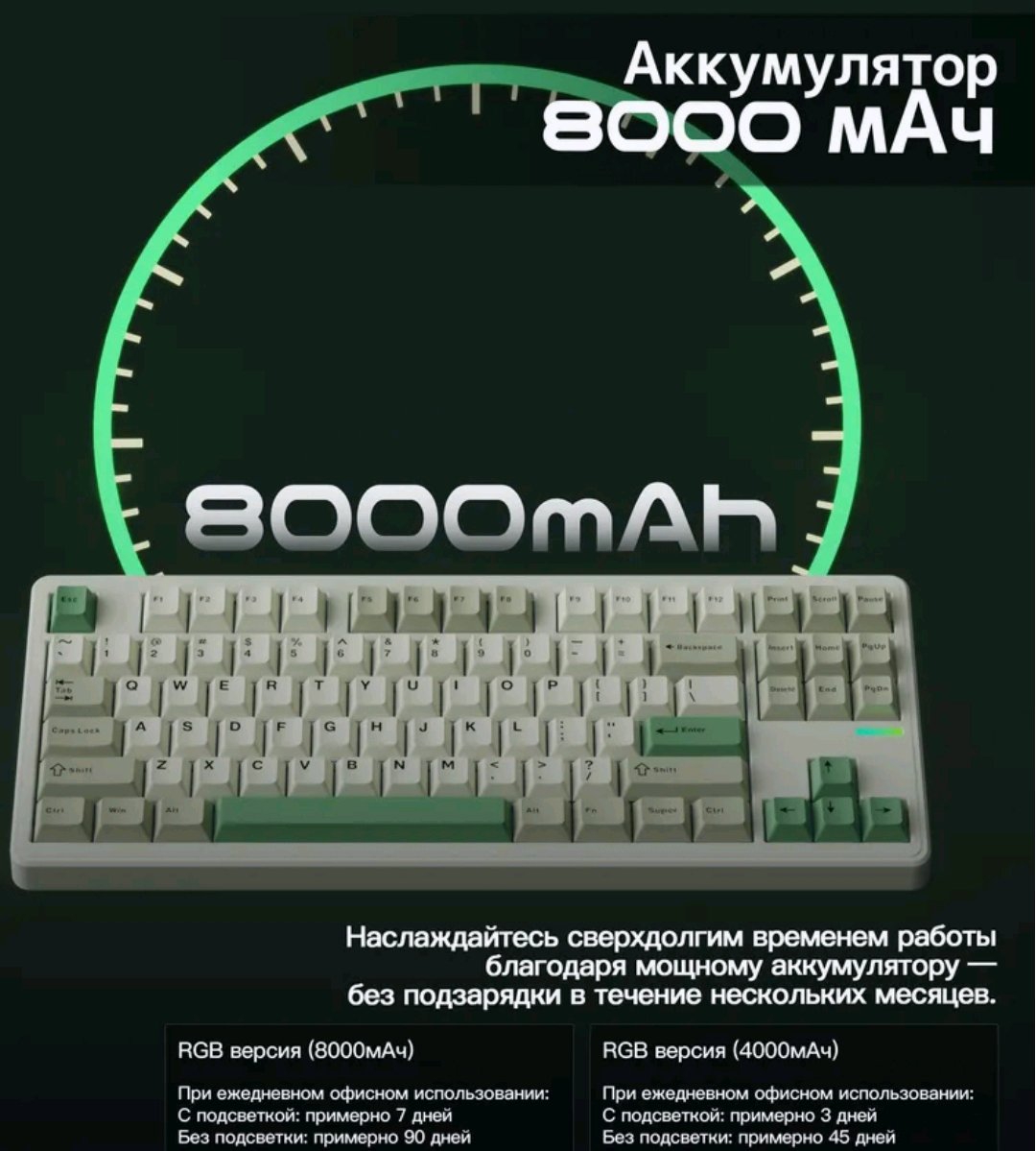 >>7640922 Пиздёж. Там стандартный lion аккумулятор, который просто лежит на дне этой донной сраулы, это ж не телефон со строгим форм-фактором. Лучше возьми беспроводную Impact 80 в версии со свичами HMX, она стоит 3 косаря, там поддержка VIA и нормальный TKL раскладон. На кой чёрт в 2026 СРАУЛУ покупать? Нахуя?