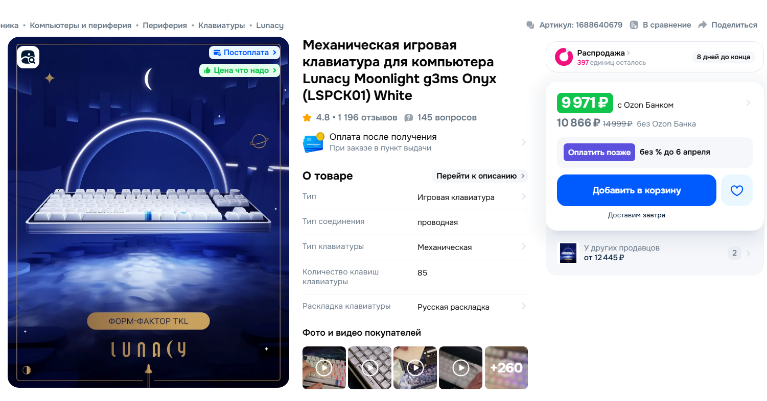 Анончики, я вам с платиной. Короче хочу обновиться, понял что хочу попробовать механику, до этого были только клавы условно самые дешманские мембранные. Бюджет 10к+-. Желательно чтобы потише (с шумодавом там хз или тупа тихими, а то я ночью мало ли пиано концерт устраивать буду) Можно полноразмерную, ну или без нумба. Fки всегда. в остальном наверное(?) пофигу. светяшки не светяшки без разницы. Че там земенять не заменять пока что пофигу ну те ваши свичи и кейкапы, кста. кейкапы можно же собственные потом поставить если тебе не понравится какой-то цвет на условной клаве которая понравилась или не всегда ? Желательно беспроводную, но можно и с возможностью чтобы так же можно подключить через провод.