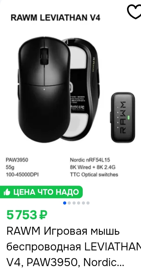 RAWM Leviathan V4 внатуре мышь имба. Полностью оптическая (энкодер, микрики) Топовый чип нордик 54, топовый сенсор 3950. 8к донгл в комплекте Форма идеальная, чуть меньше суперлайта, прям универсальная. Стоит всего 4500руб. Это же просто ебучая находка. Я не верю наху