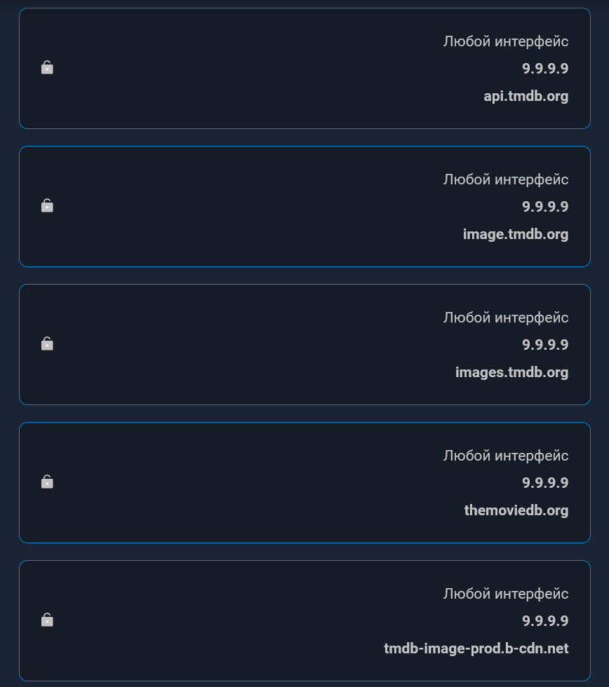 Кто-нибудь настраивал DNS, чтобы jellyfin или другие программы могли брать постеры фильмов с tmdb? Проставил DNS 9.9.9.9 где только можно - всё-равно не работает
