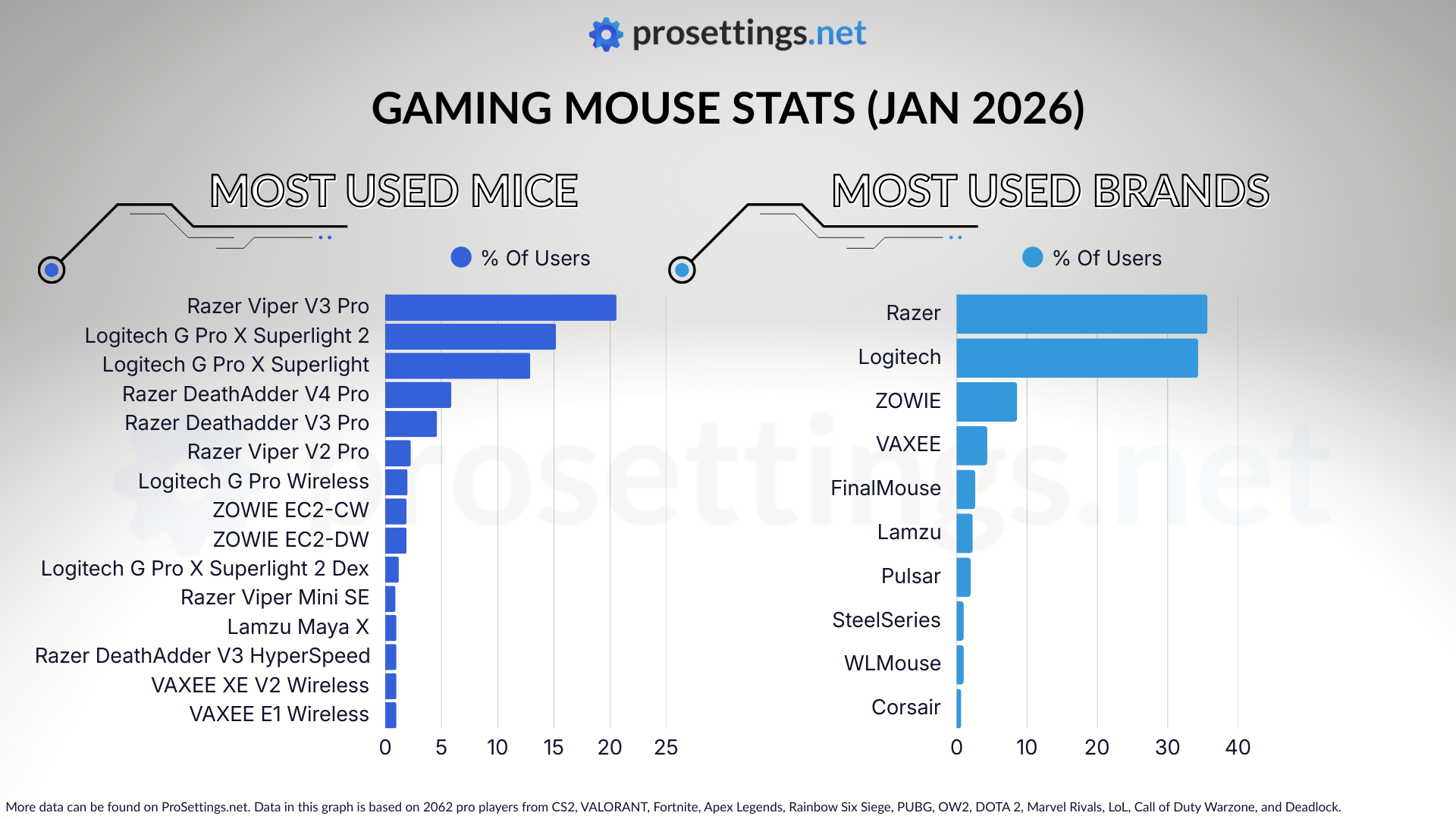 Если хочется старых брендов: Zowie, Pulsar, ASUS ROG Harpe II, Keris II Razer Viper 3 Pro, Deathadder: 3 Hyperspeed, 4 Pro Logitech Superlight: 2, 2c, Dex