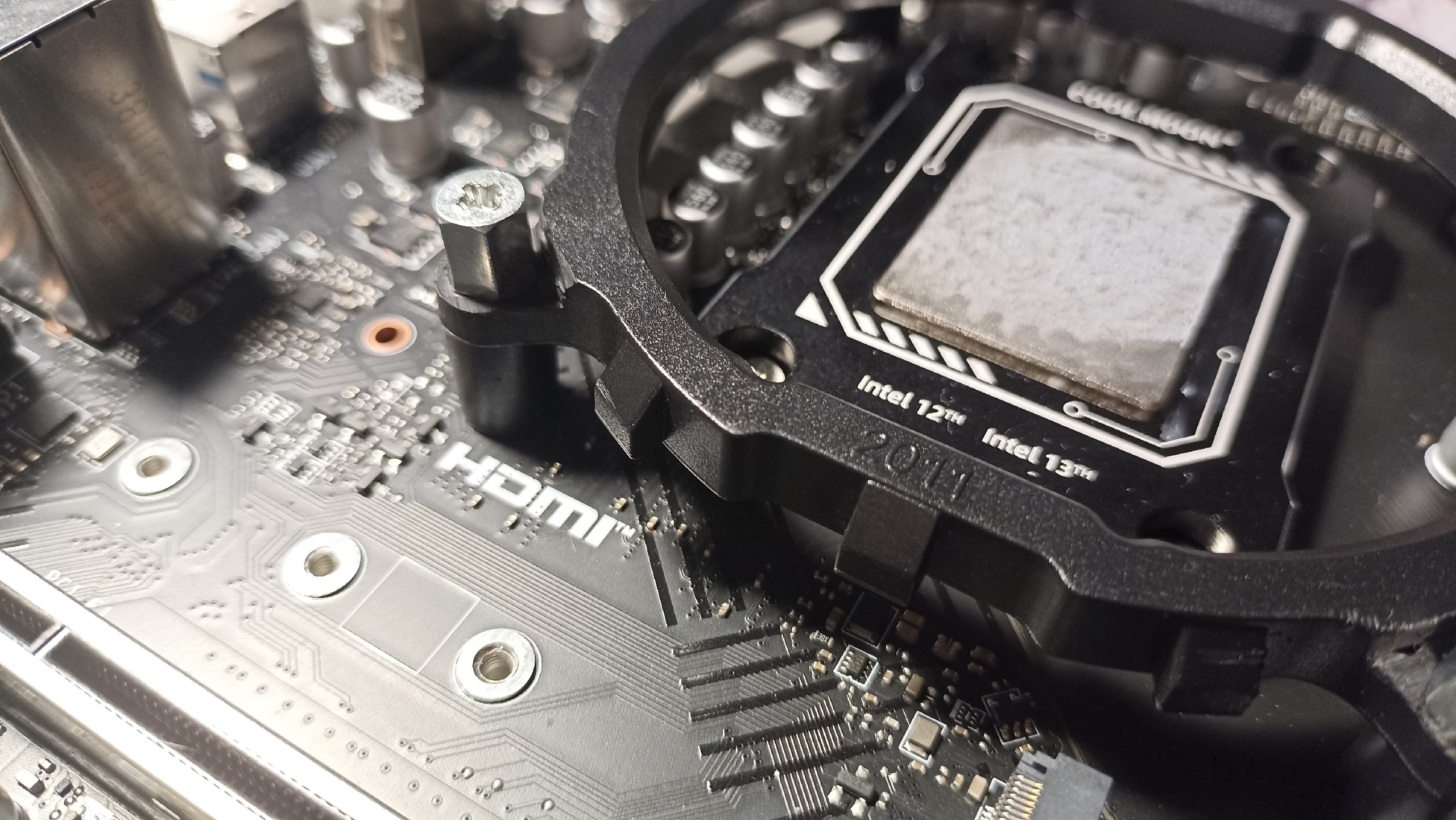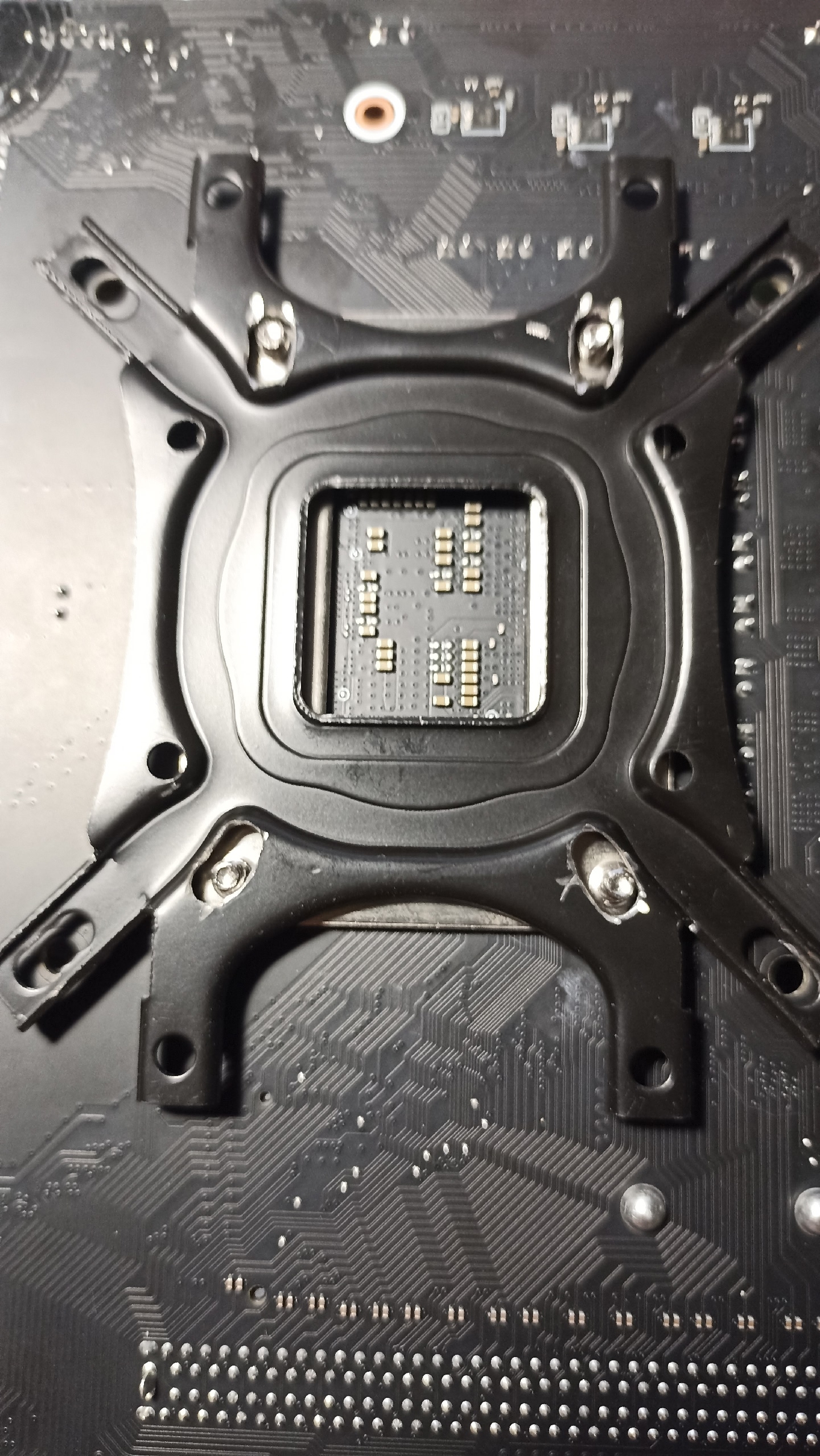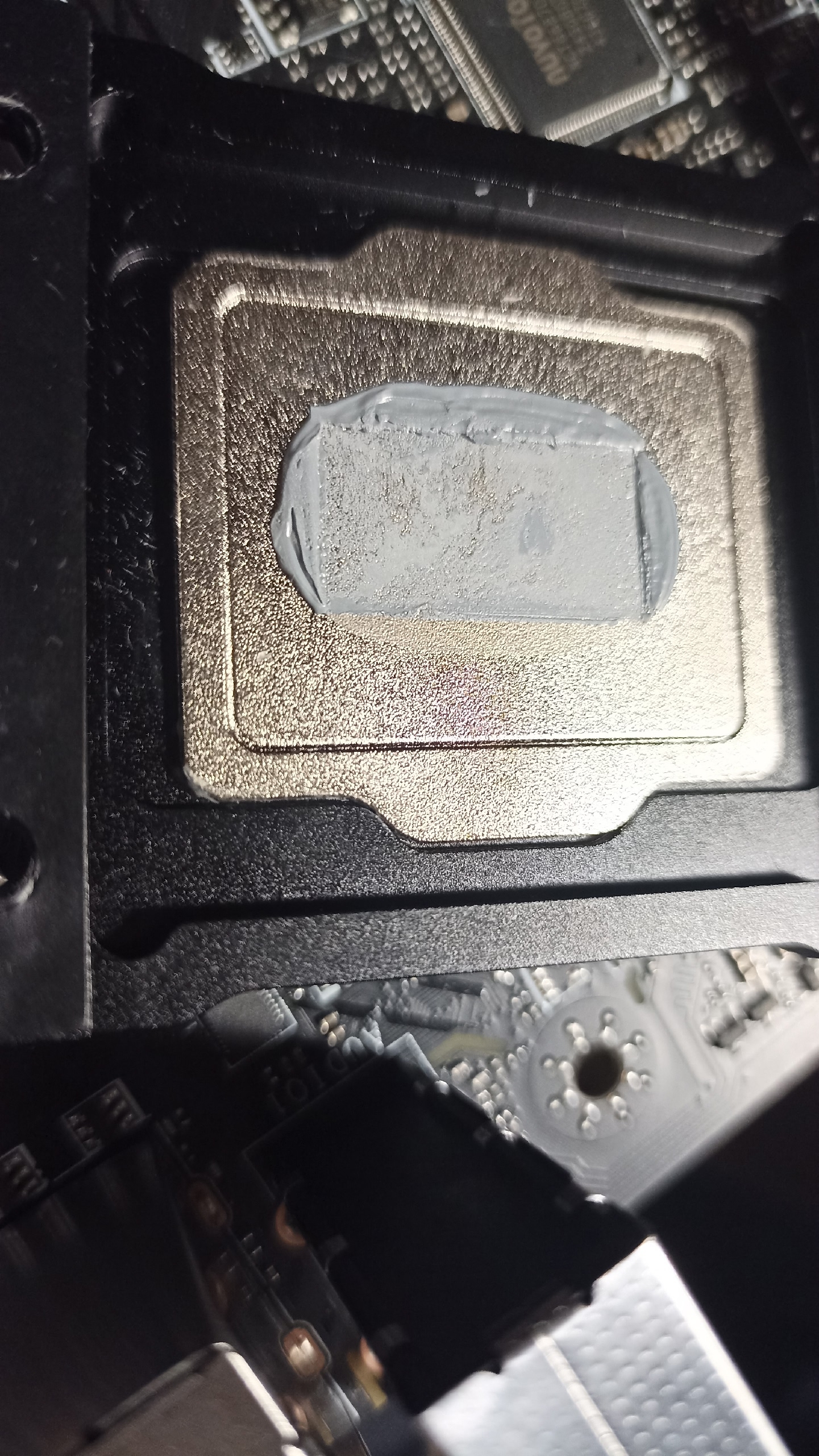 >>7648559 Продолжаю держать в курсе, но т.к. сообщения проебались, повторю, что бы не терять нить. Фазовую термуху раскатал по чипу как мог, вставил в сокет накрыл крышкой и начал закручивать рамку прогревая феном. В итоге крышка села идеально. Клеить герметик пока не буду. Подогнал бекплейт для кулера под 1700. Бекплейт остался от какой-то башни, что ущел на 2011(там свой бекплейт). Всплыла проблема материнки, брал ее из уценки с отвалом канала памяти. Чекнул по боардвью нужный пин, пошкрябл пинцетом, сейчас работает.