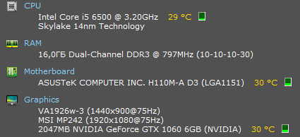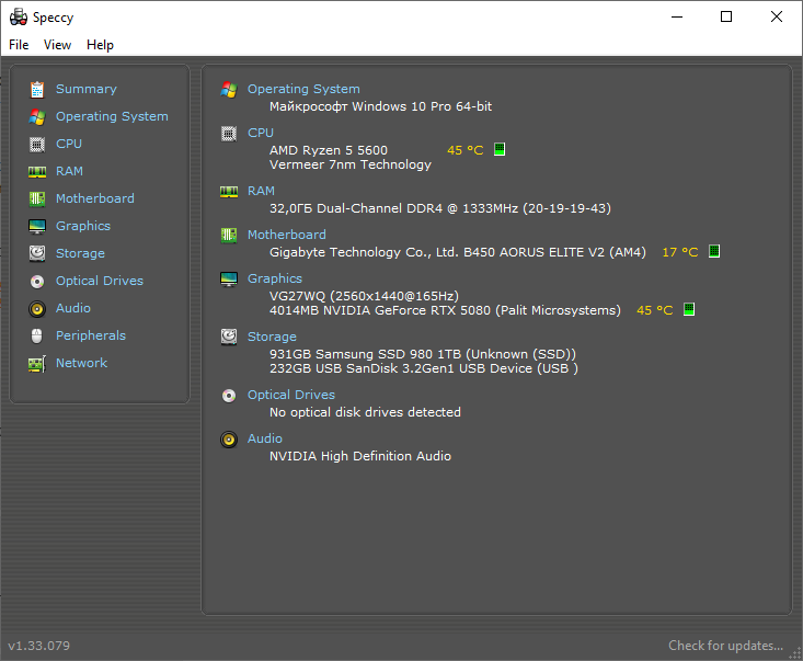 Operating System Майкрософт Windows 10 Домашняя 64-bit CPU Intel Xeon E5 v3 @ 2.90GHz30 °C Haswell-E/EP 22nm Technology RAM 64,0ГБ Dual-Channel Unknown @ 933MHz (10-10-10-28) Motherboard HUANANZHI X99-TF (SOCKET 0) Graphics MACROSILICON (1920x1080@60Hz) 2047MB NVIDIA GeForce GTX 1060 6GB (Gigabyte)54 °C Storage 476GB Apacer AS350 512GB (SATA (SSD))29 °C 232GB Samsung SSD 850 EVO 250GB (SATA (SSD))34 °C 930GB Microsoft Storage Space Device (TMax )