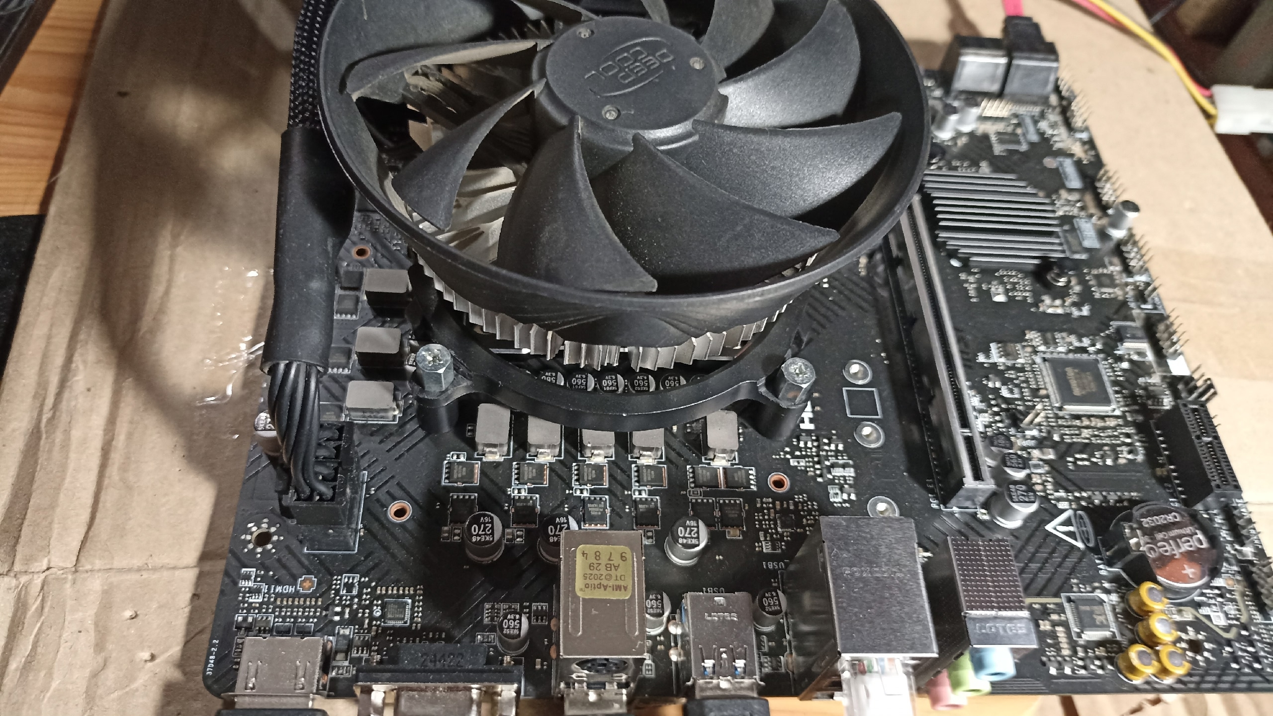 >>7650394 Кулер что-то вроде арчера(а может и он), нужна рамка под ам3. Взял от 2011, считай бесплатный мусор. Пришлось подрезать и рассверлить(с смещением) под винты что у меня были. Термуху взял бесплатную с озона. В итоге работает, на 50ваттах, можно ставить в корпус. По ощущениям получается какое-то дерьмище, по всем пунктам. 1. Взял рамку вместо сокета. С итоговым вариантом не сравнивал, вроде как с родным прижимом температуры были ниже. Но как минимум шиза спокойнее будет, прижим не раздавит бутерброд, страшилки говорят, что и заводским доставалось. 2. Сам проц пришлось буквально напильником дорабатывать, крышка отвалилась. Сам проц какой-то поебаный, разок точно уронили. 3. Материнка из уценки, без заглушки и\о, нет DP на встройке. 4. Пятка кулера слишком маленькая для большой крышки. Обороты у кулера низкие, с одной стороны тихо, но стресс тест греет до 70, можно было и активнее дуть.