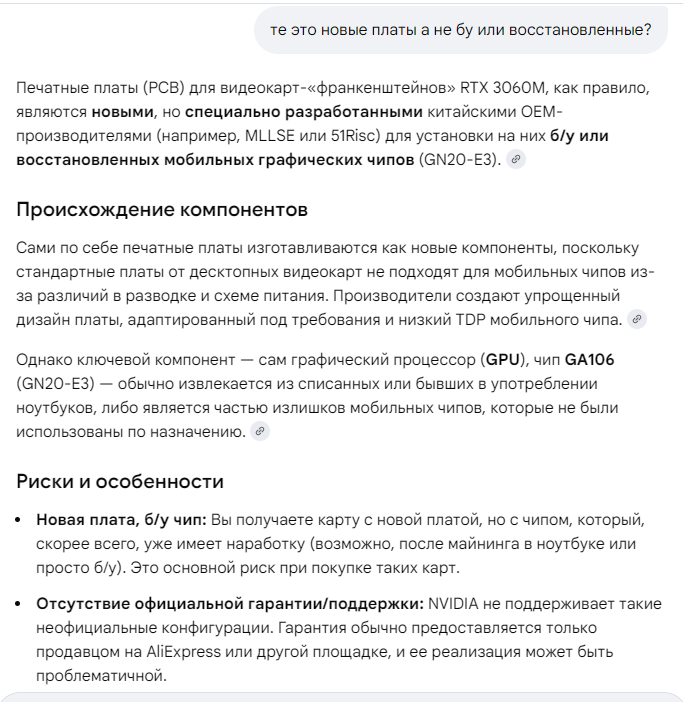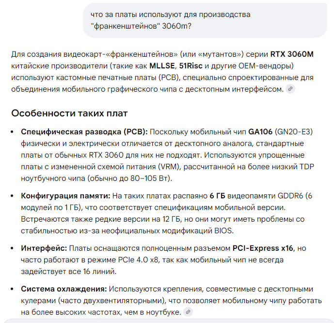>>7649939 ну чел 3060m - это "франкенштейн" те подвальная карта сделанная из мобильного чипа 3060m и дискретной печатной плате, платы могли быть как бу, как восстановленные, так и новые, качество таких переделок разное, тк их разные китайцы в разных подвалах делали.. в общем ты должен понимать риски..