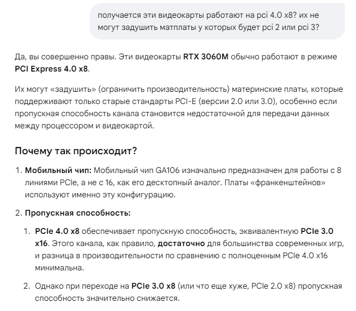 >>7685120 >3060м всего скорей та, что в ноутбуке будет стоять, а не в виде карты. Эм. Как бы обвес в виде "карты", ебать чипу нихуя не дает. Ну паверлимит будет чуть больше не со всеми драйверами, кст. То есть у тебя, еблан, как бы та же 3060м из ноутбука. И это неплохая карта так-то, особенно за 7к - но ты то все равно еблан.