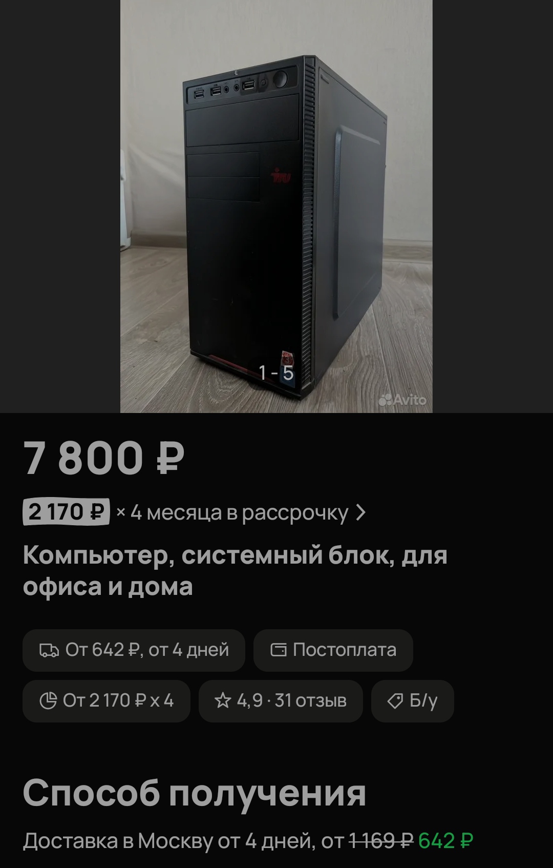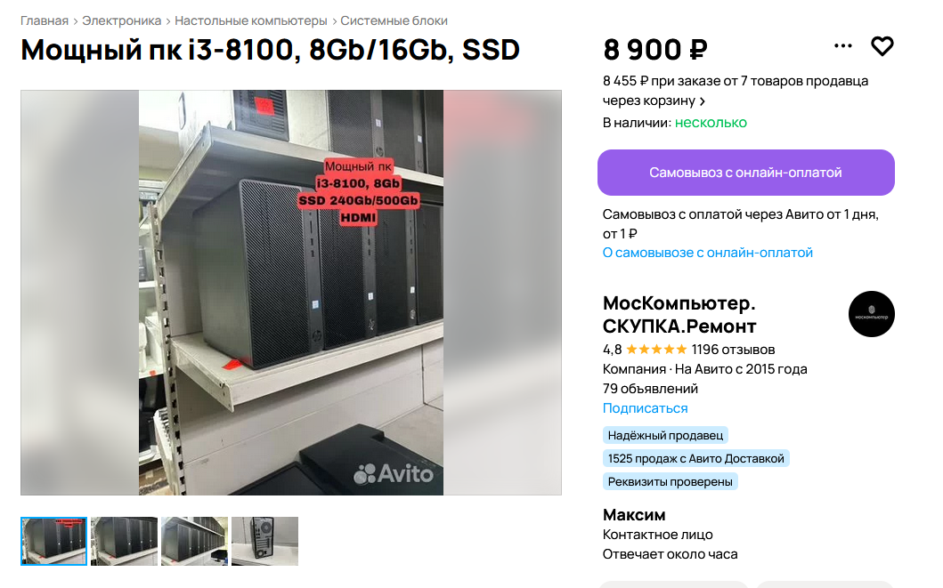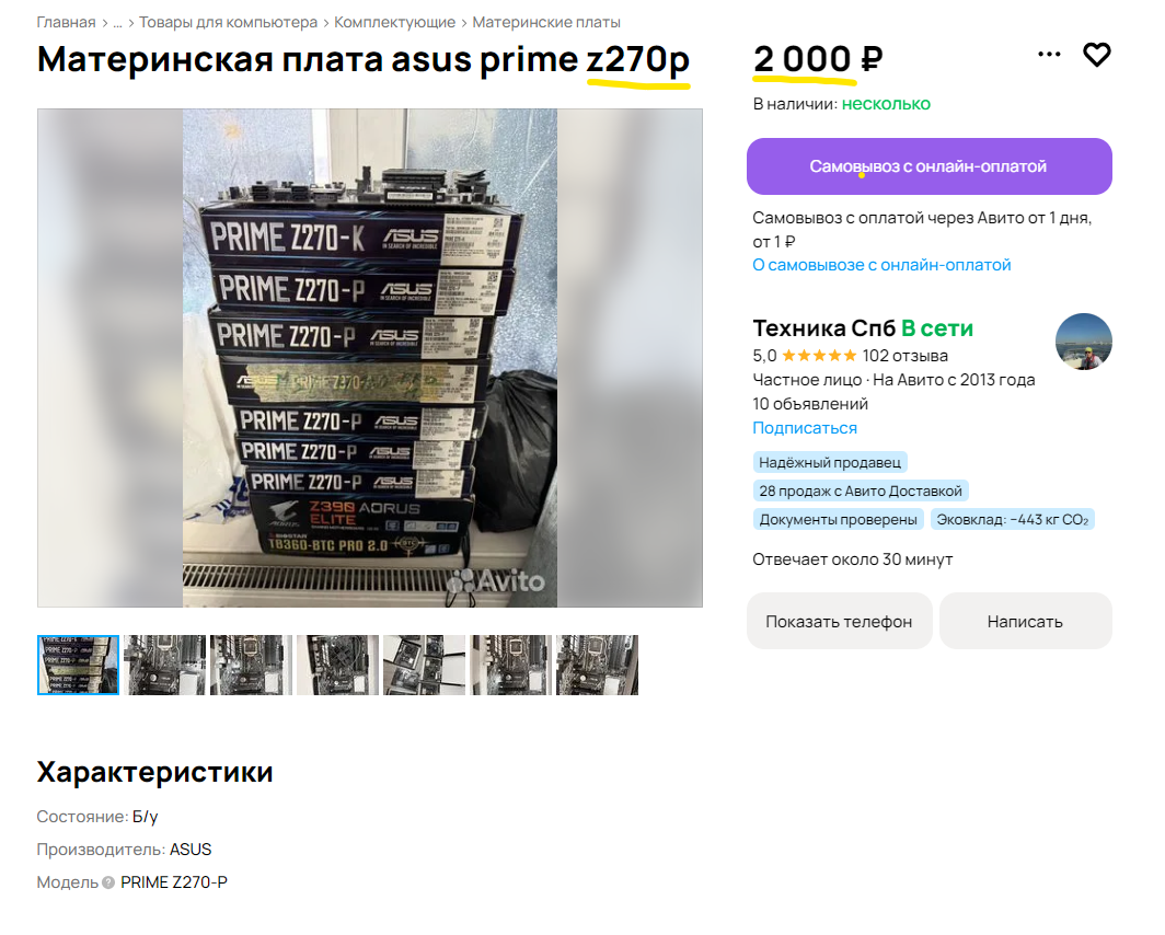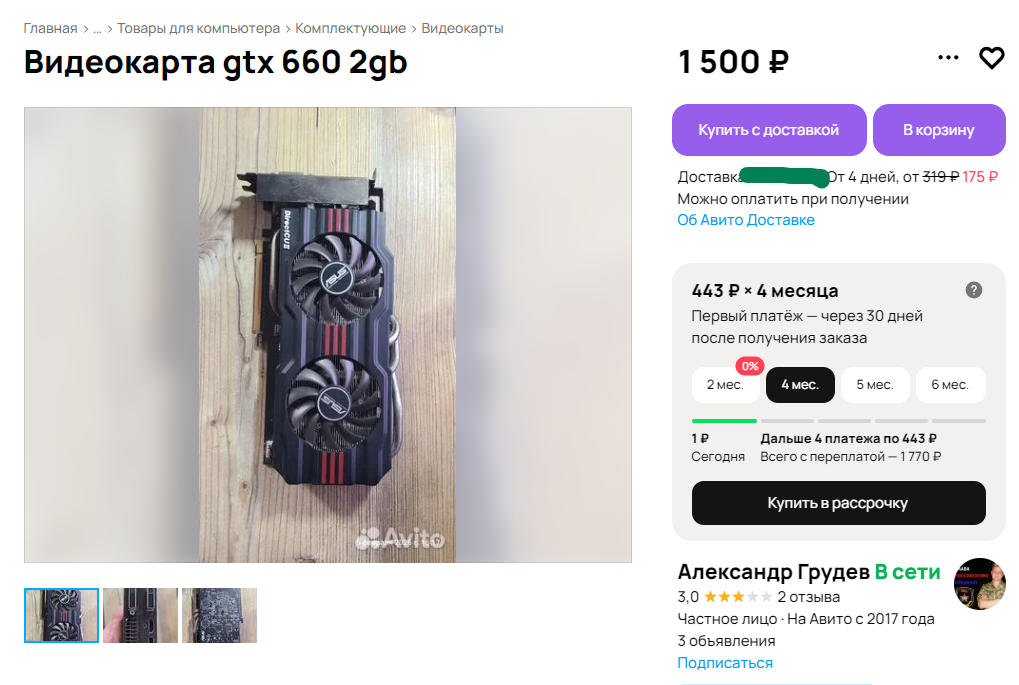 >>7647262 >А как покупать видеокарту на Авито? Без задней мысли, все проверки (и дистанционные, и даже личные - туфта). Сам покупал картонок 10. Ни разу не наебался. Смотришь отзывы, мониторишь цену. Я лично сразу жал купить с доставкой и все, ни разу не говорил с продавцом.