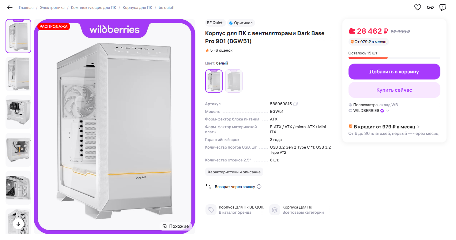 Этого топового корпуса уже нигде нет в наличии, кроме как на ВБ И то, там чёрную версию уже раскупили, осталась белая Бери скорее: https://www.wildberries.ru/catalog/588969815/detail.aspx Продавец сам ВБ, то есть надежно с гарантией!