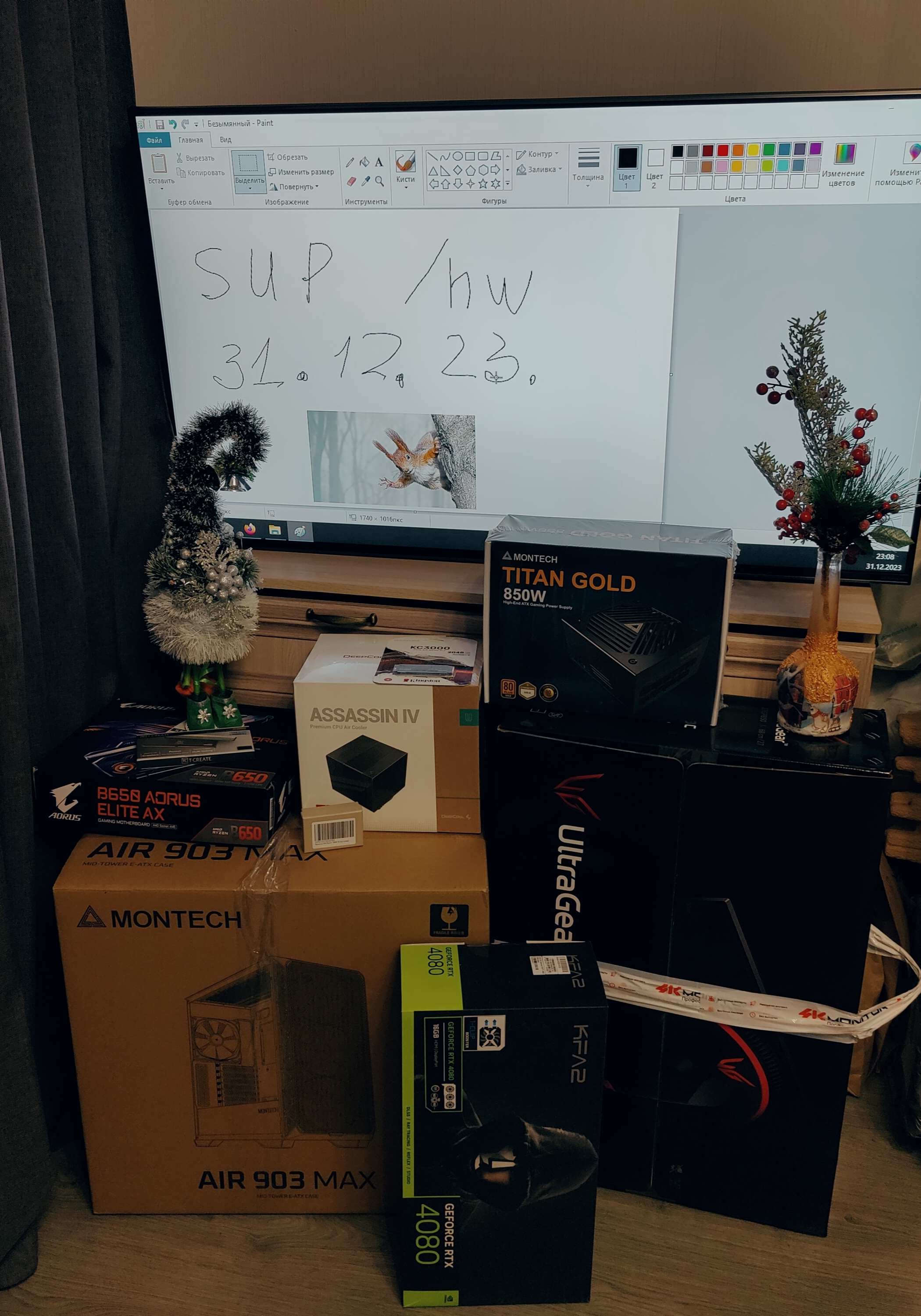 Держи, братишка, твоя новая роскошная профессиональная королевская YOBA-3борОЧКА!от загодочного Белкусика Такую тебе йоба-пушку-гонку собрал, закачаешься! Все игры и LLM на ульрах пойдут, такого компа на 10 лет хватит, внукам своим завещаешь! Всё новое на гарантии! Супер-секси белый билд получился сам собой Значит так, бельчонок, я тебе собрал, и в благородство играть не буду, сделаешь мне пару фото-супов со сборкой и мы в расчёте.