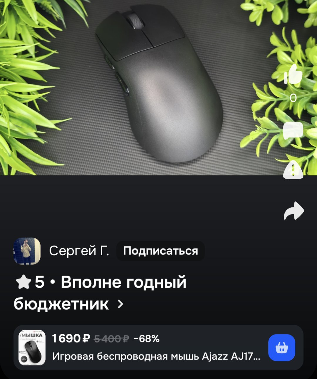 Рейт, 1,3к рублёв. В чём подвох? Вроде норм мышка, отзывы хорошие, выглядит не чухански и не геймерски. Сенсор 3311, но я не киберкотлета, как я понимаю, его полностью хватает.