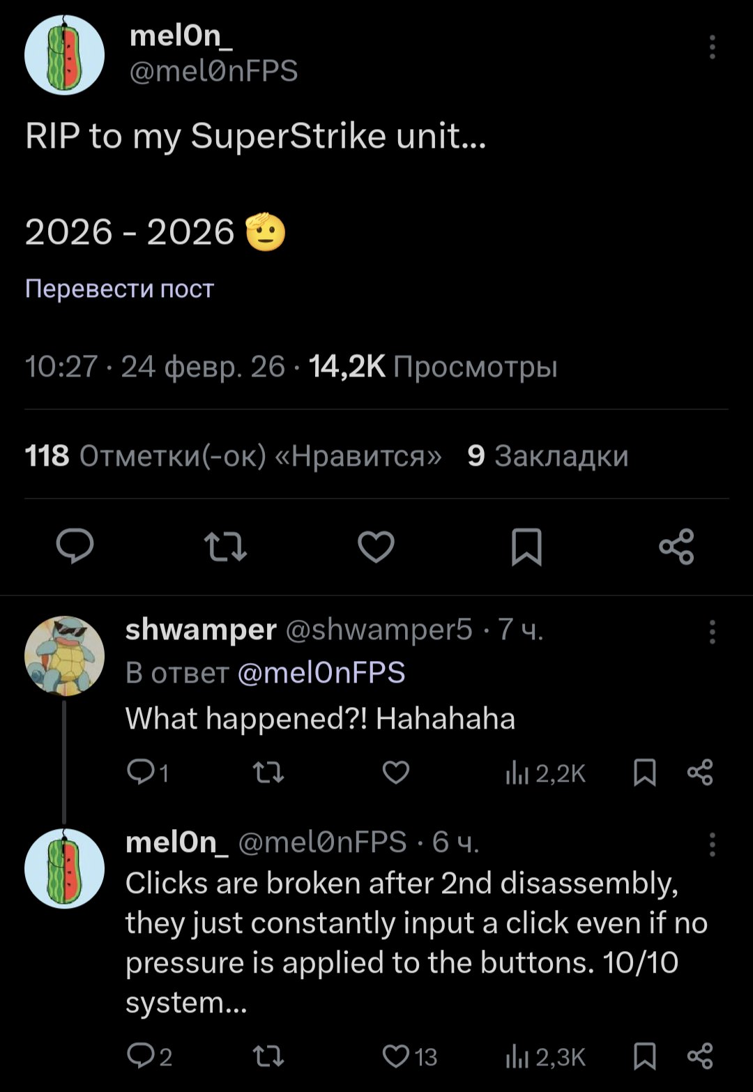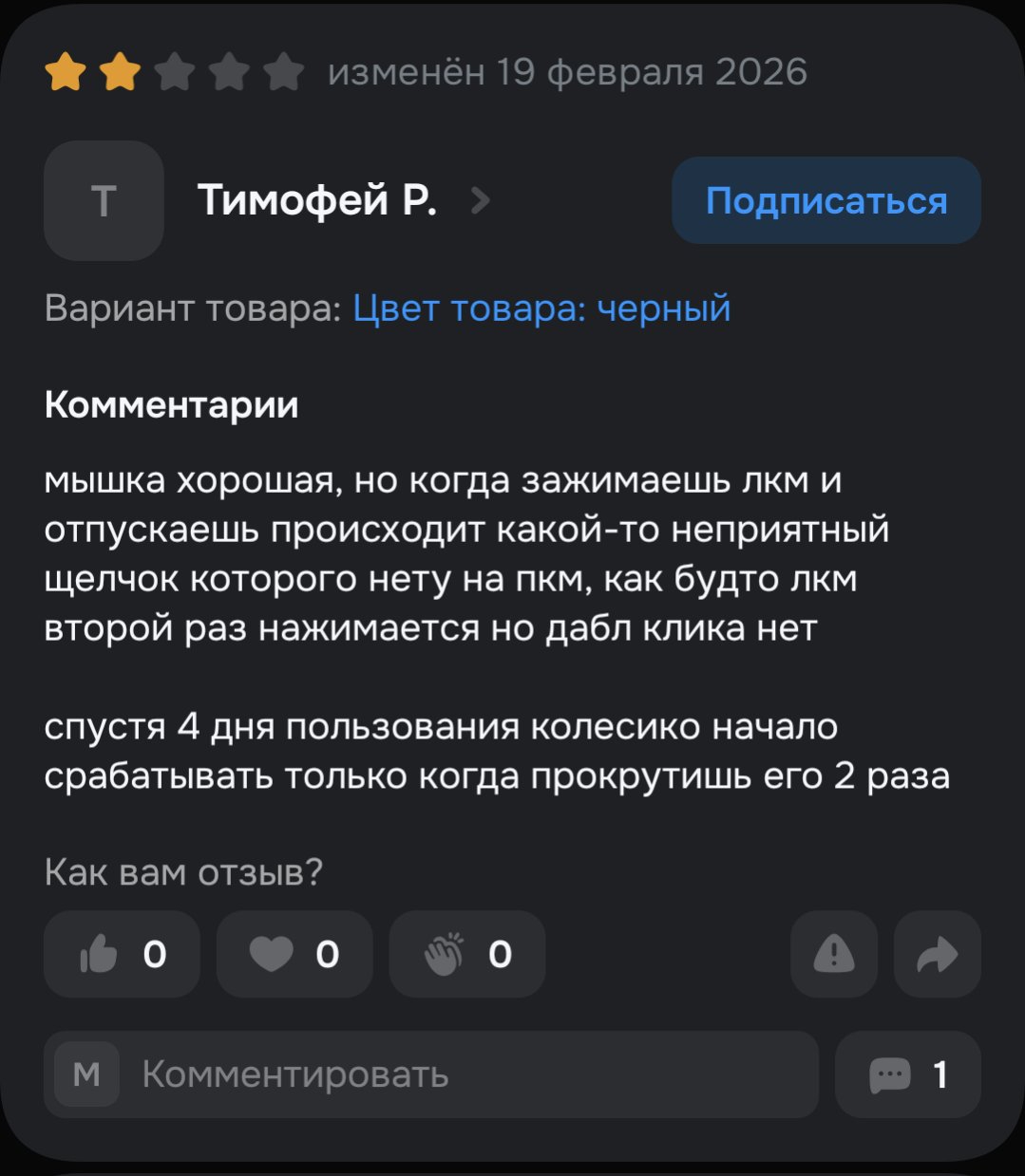>>7675737 У логитек это база, я еще с первой вирлис про помню ебаные даблклики, я их хз сколько перебрал по гарантии, потом прошивкой пофиксили, лол. Видимо кривой софт у чипа был просто. Хз как лохитек можно брать в 2026, у них все модели из говнопластика который становится глянцевым через полгода, какой-то максимально дешманский абс.