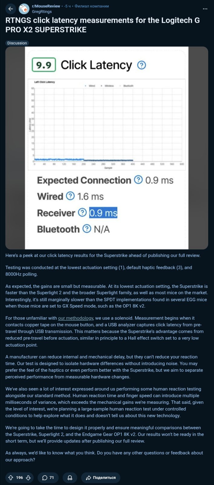 >>7676524 Не видел такой инфы в веб панели, не думаю что реальные цифры будут отличаться буквально от любой мыши с тем же mcu и батареей, железо одинаковое. Если где то в драйверах только обосрутся, но очевидно пофиксить всегда можно с обнвоой