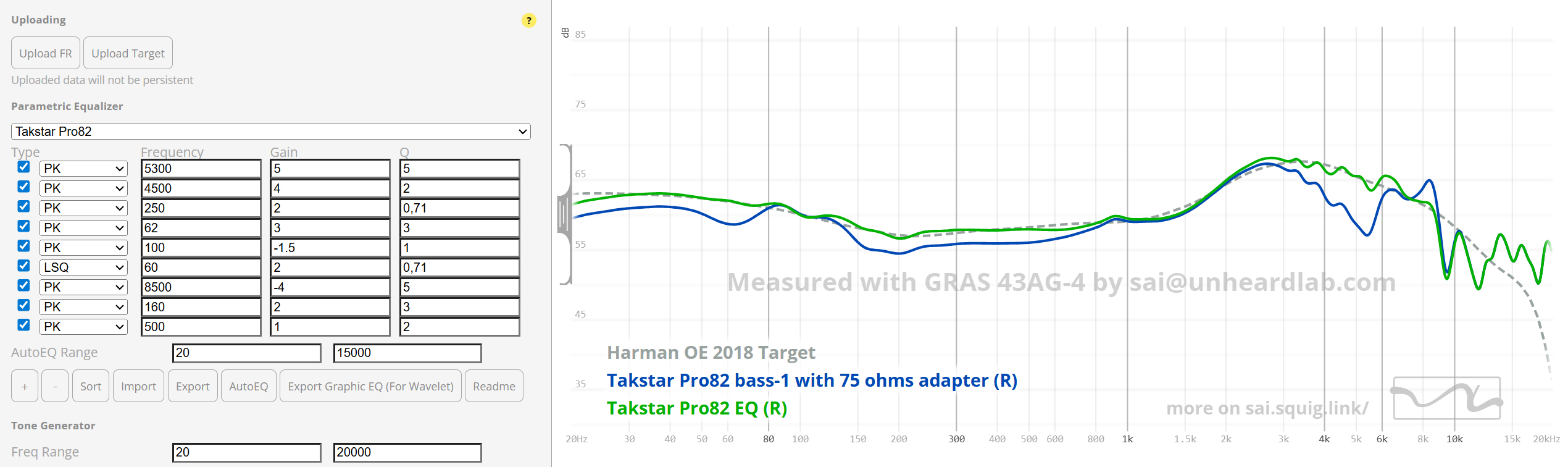 >>7675568 >>7675537 2 фильтра эква и они почти неотличимы от референсных ушей за 30к. Идеальная дешманская болванка под экв. Сраные 300-500 рублей и можно спокойно крутить пресеты под любые таргетные кривые, не выдрачивая кучу косяков с генератором синусов