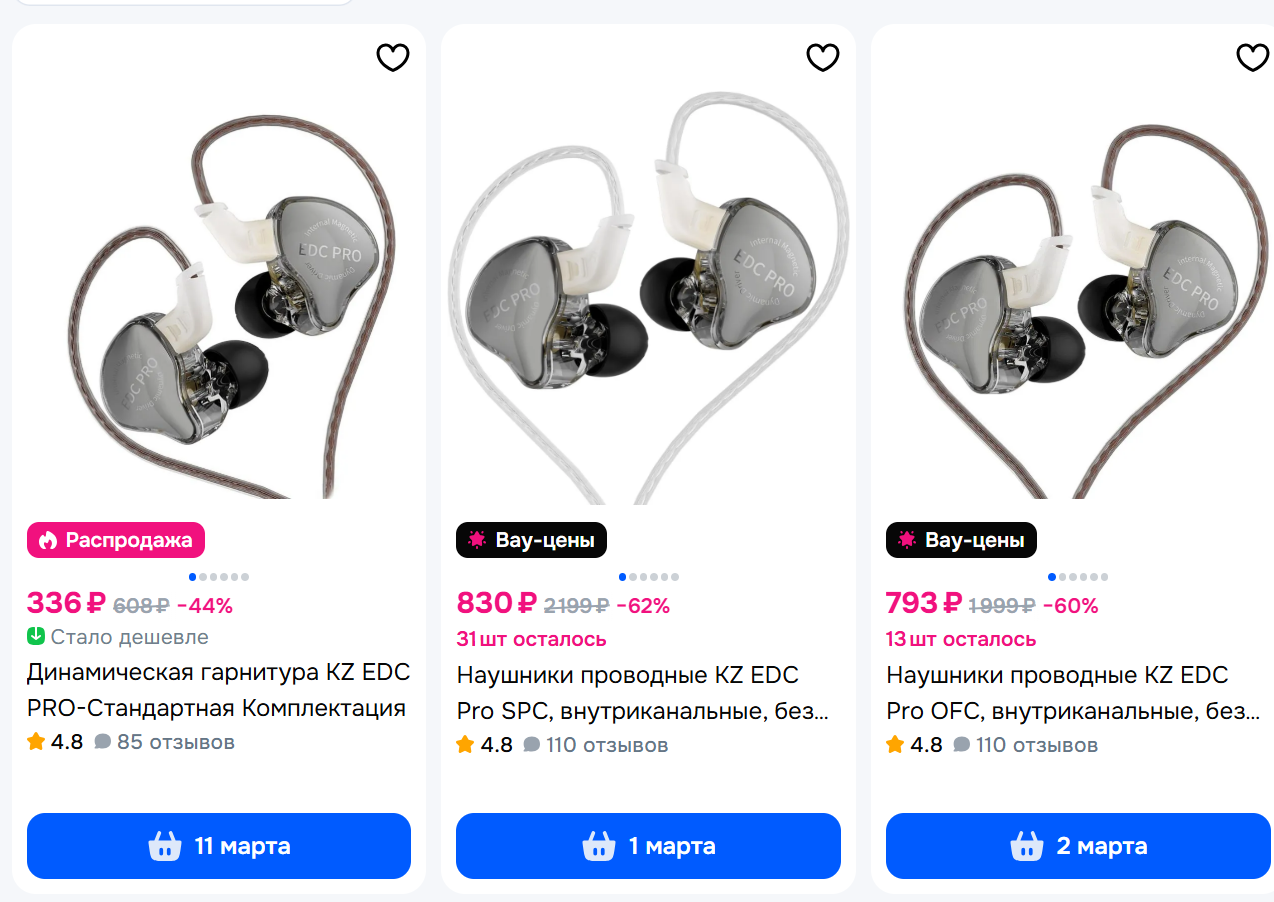 >>7674732 >KZ EDC PRO Заказывал и обратно сдал не выходя из пвз. Звучат прям на порядок хуже моих старых AKG которые в комплекте к сосунгу шли. Небо и земля. А стоят примерно так же.