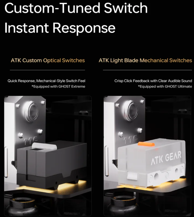 • Оптические микросвитчи делают Omron, Raesha, TTC, Kailh. Звук и клик спорные, но конструкция в целом надёжнее, отклик минимальный. Можно заменить, продаются отдельно, как и механические.