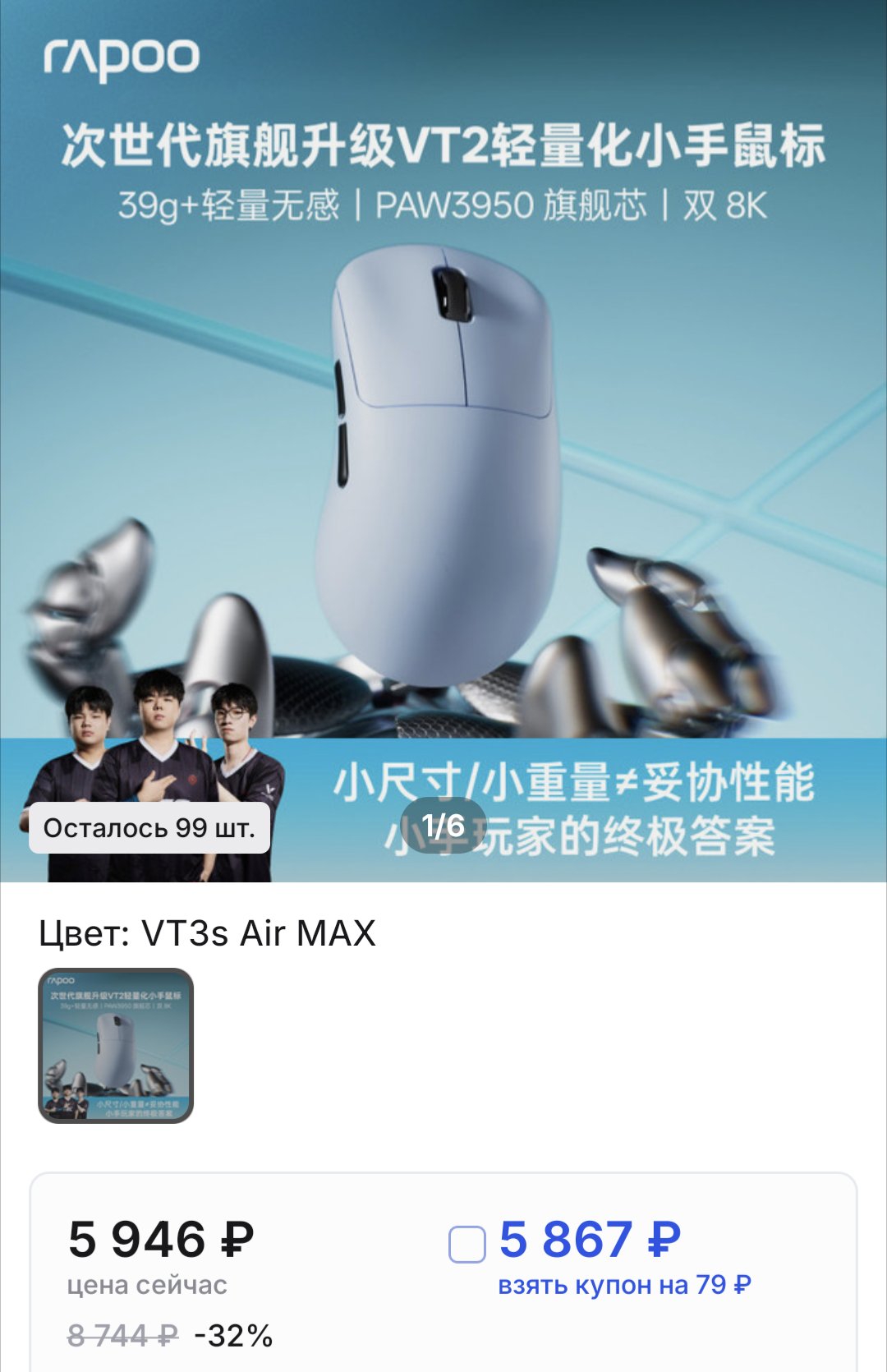 Чёт щас глянул в таблице из шапки, это реально у Attack Shark X8 Ultimate помимо того, что нордик 54 и 3590 еще и микрики оптические? То то я думаю, чё они так необычно кликают. Пользуюсь почти месяц, всё заебись, нраица. Она кстати опять появилась у того прода, правда цена уже не 2600, а 3400, но для такой начинки всё равно конкурентов нет. Батарея кстати держит заебись, за три недели показывает 65% заряда.