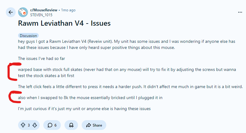 >>7683741 Причем тут даблклики и срыв сенсора? Разер с завода штампует кривые клавиши, еще и косоглазые крвио их прикручивают. Каждый второй пост на реддите об их мышах об этом. Свободный ход клавиши - когда она в воздухе висит, не касаясь в 1-2мм от свича. Легким касанием ощущается как клавиша касается свича, есть буквально на 90% мышей от разера с 2020 года точно. А даблклики оставь логитеку, это их тема.