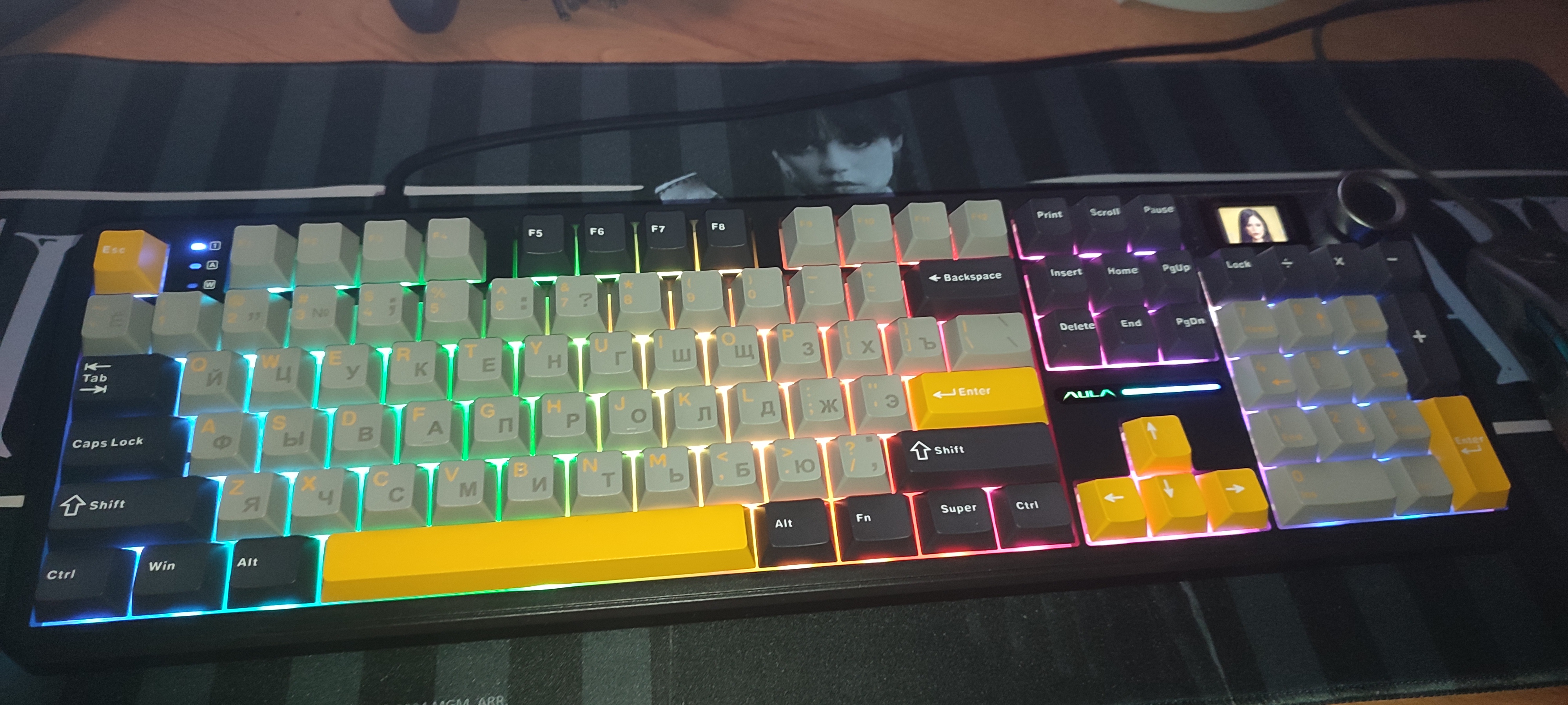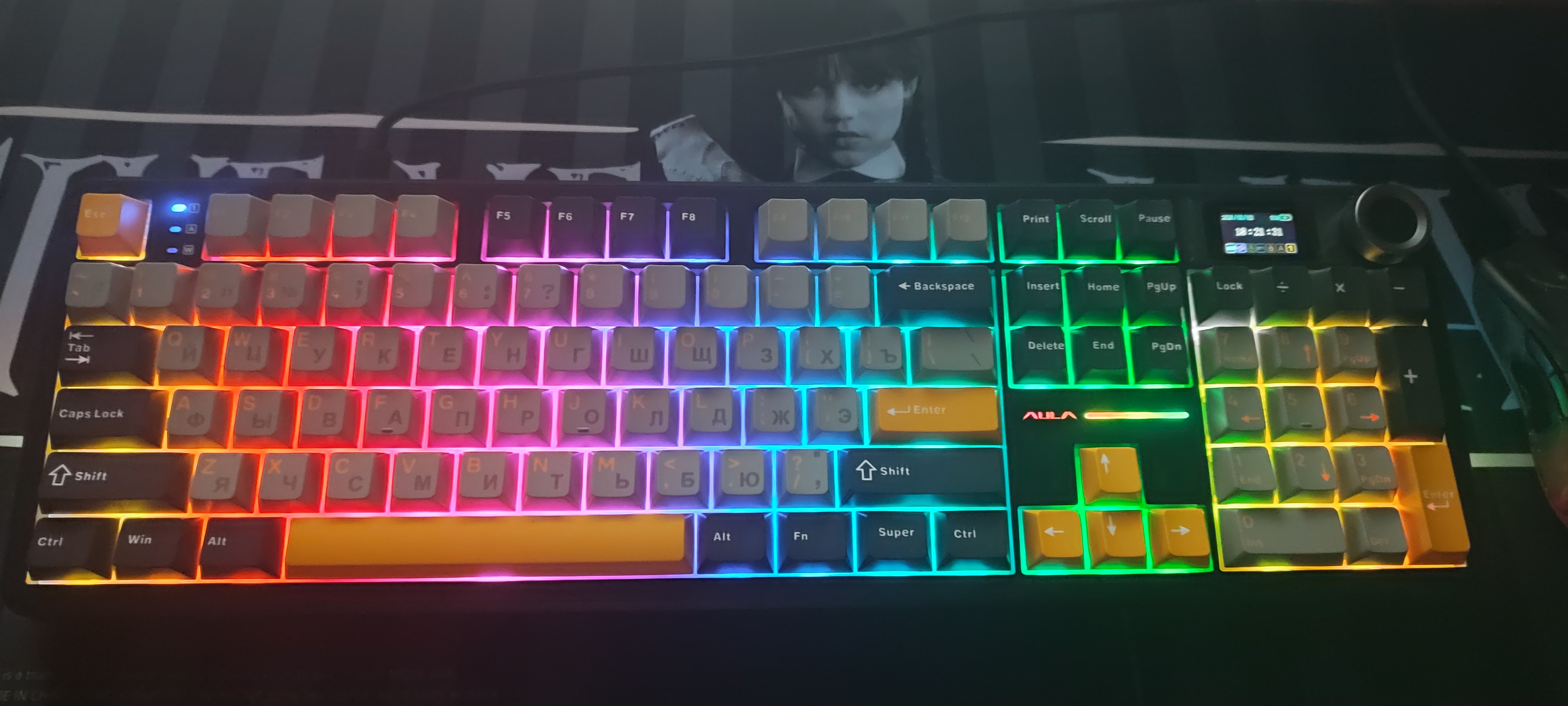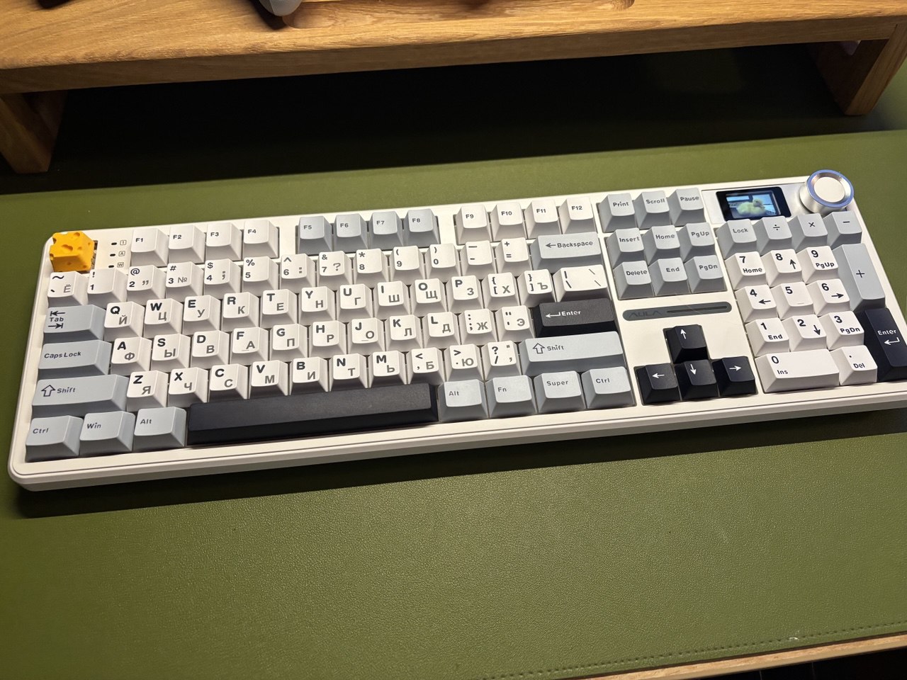 Короче не зря вы отговорили брать кейхрон. Взял Aula F108 Pro и не пожалел. Единственный субъективный минус - type c слева, а не справа где то. Далеко тянуть провод для зарядки Так же у клавиатуры ванильные кейкапы слабо просвечивают на фото не видно но это так, но я бтв купил новые, жду завтра или послезавтра. И это проблема, кто в слепую не может и сидит в темноте.