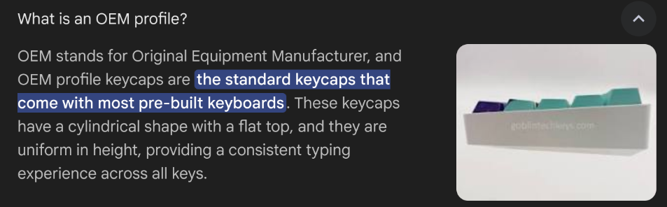>>7681354 Если говорить про черри профиль - то там каждый ряд имеет свою форму, местами клавиши менять нельзя. Вообще советую попробовать несколько разных профилей, многим заходит xda, хотя для слепой печати лучше черри.