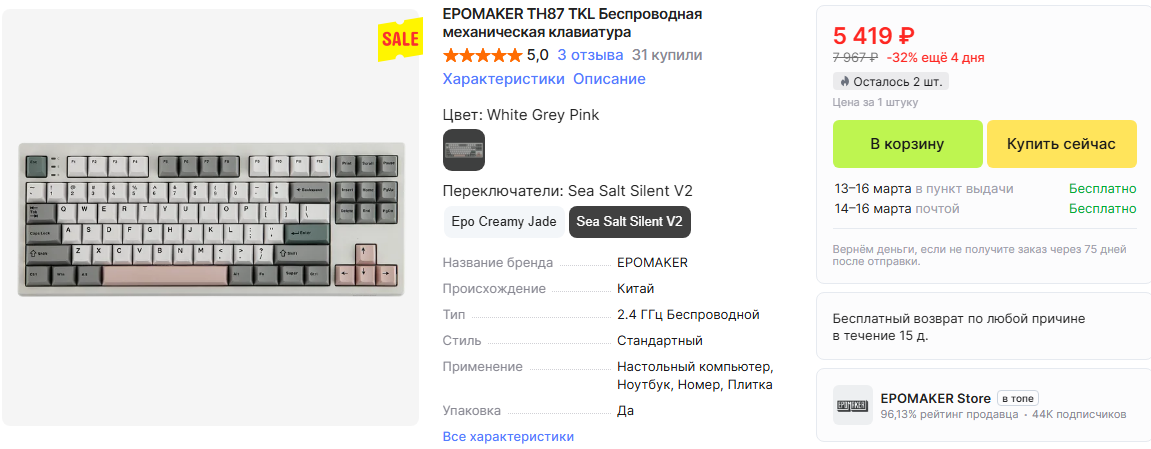 Я тот хуй что жаловался в прошлом тренде на отэму свичи, - в общем пересобрал все 100 штук, терь нормально работают. Думаю взять вторую клаву уже для себя, и вот дилемма - не ебать мозги и купить epomaker th87, либо опять упороться собрав на gmk87 уже с нормальными сайлент свичами. 70 евробачей против 120.