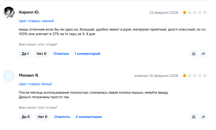 Купил ради прикола R1 S. Обошлась за 770 рублей, взял чисто для прикола. Сборка и все остальное как у обычной R1 без покрытия. Странное ощущение от колеса, вроде F свитч, он даже похож на Z1, короче такая же хуйня) Кнопки тут типа дешевые, но мне зашли, нормальные. Тут NearLink, да, но сенсор хуй знает, в R1 N сенсор типа 3395se на 18000 dpi, а тут только 15. Вероятно 3311 с разгоном. Разницы я не чувствую. В целом все еще лучшая мышка за 1000 рублей, но кажется R1 NearLink ощущается лучше, во всяком случае моя будто лучше и чуть легче. К сожалению дно кривое, винты заебался крутить, но на стекле не удалось добиться идела, да и похуй, я сижу на тряпках и вообще завтра уберу эту залупу и вряд ли вернусь, сотдам кому-нибудь. Мой совет, лучше взять R1 N, чем S.