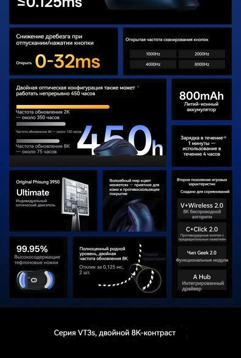 • Nordic 52xxx / Realtek / PixArt / NearLink - пастген. Если готов заряжать мышь раз в 7 дней (250 mAh - 70 часов) или раз в 14 дней (500 mAh - 140 часов), можно брать, особенно если модель дешёвая или хорошо сидит в руке.