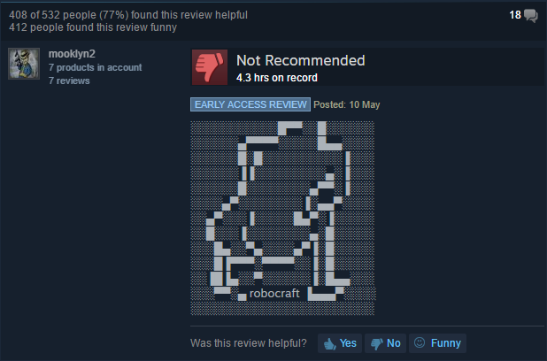 Если вам понравился робокрафт, но не понравился гринд и баги - играйте в Machinecraft, или From the Depths, в них перекатился почти весь форчок. есть мнение, что Machinecraft говно. Есть также космоинженегры, у них кстати свой тред в https://2ch.hk/spc/ и по besiege тоже - в https://2ch.hk/ind/ . Ещё есть такие штуки как Galactic junk league, Avorion . Empyrion и другие малоизвестные игрульки со схожей механикой (вряд ли будут интересны хоть кому-нибудь в этом треде).