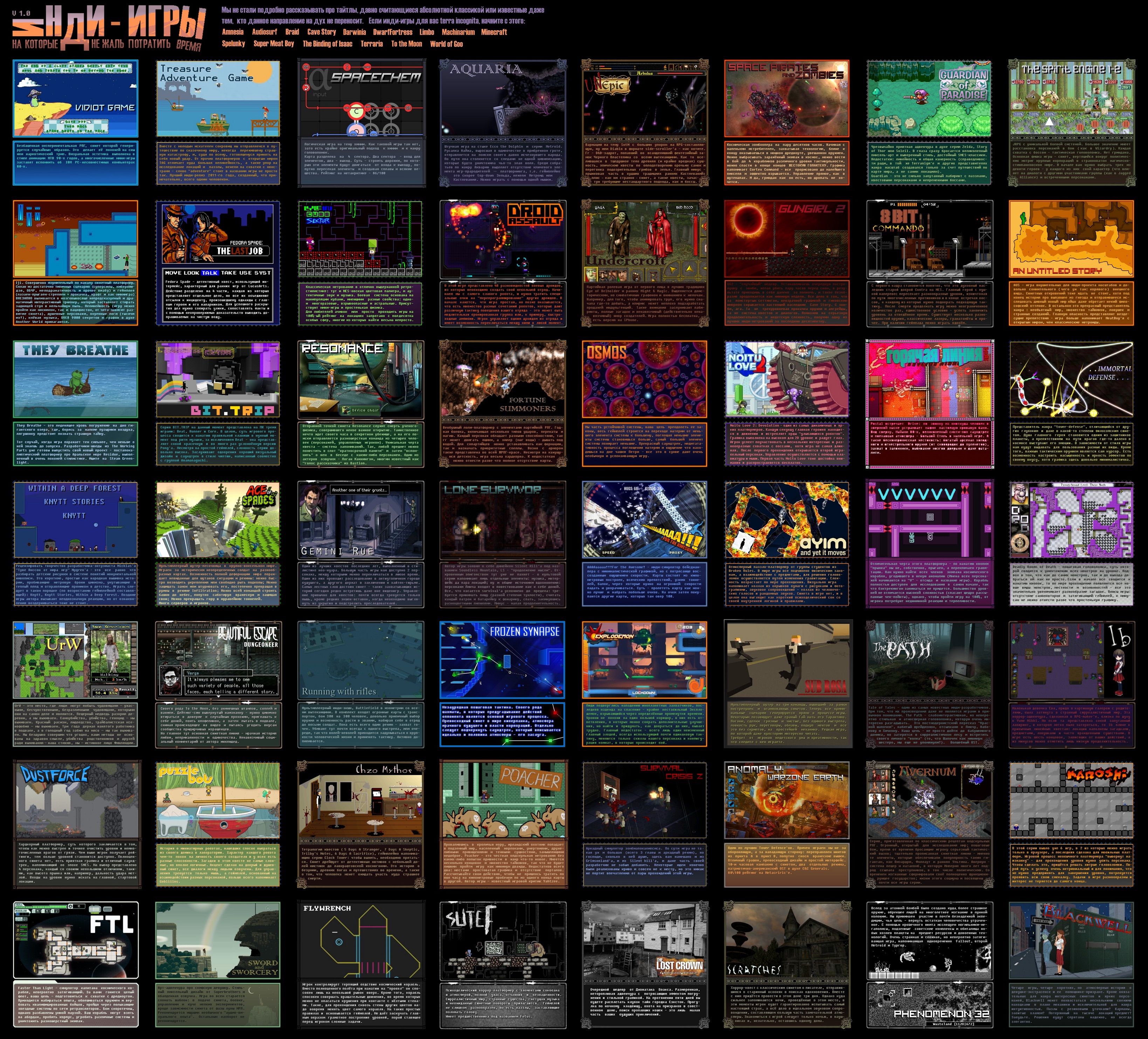В общем щас индюки если что-то связанное с инди и пилят, то это 1)ебаные жрпг на своем рпг мейкере 2)ебанутые рогалики с графоном(таки дерьмовым графоном, но на графон плевать ваще) 3)ебанистические воскрешения какихто студий, которые "причастны к разработке фулаут" с помощью краундфандинга (ничего достаточно годного пока не появилось на этом поприще) с их попытками пилить традиционный изометрикал рпг 4)унылые тактические ролевки, вдохновившись успехом икцома(не то чтобы плохи совсем, просто унылые)