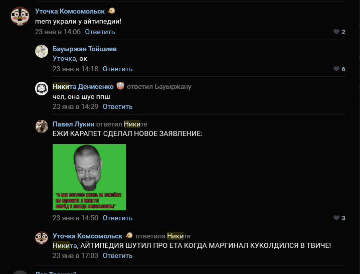 Малолетний долбоёб именуется "Никита Денисенко с id 440284639"