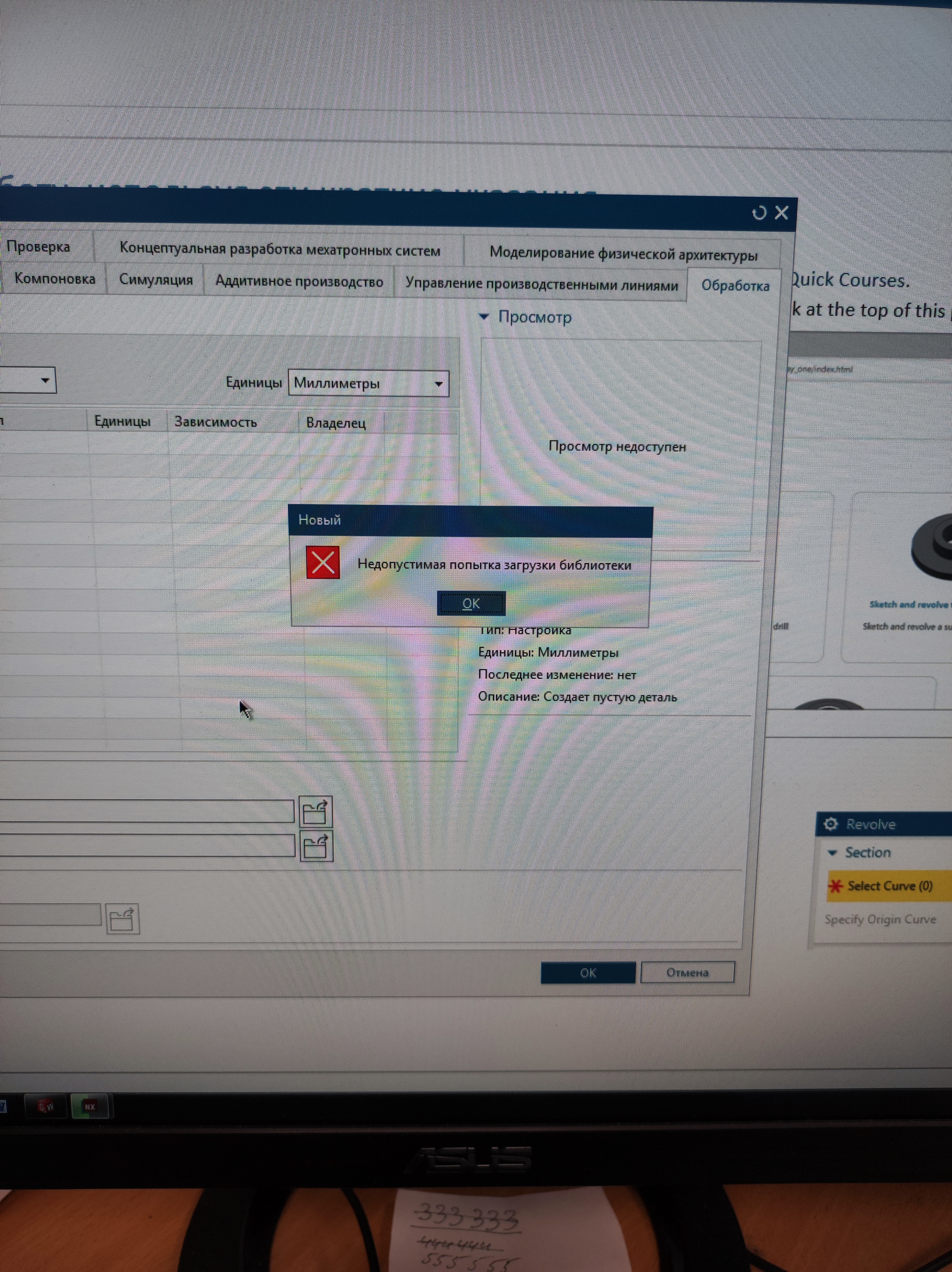 Всем привет, возникла проблема, решил накатить себе nx, все установил по инструкции solidsquad. При создании любого документа (модель/сборка/обработка и тд) возникает ошибка "недопустимая попытка загрузки библиотеки" (на пике) есть возможность решить данную проблему?