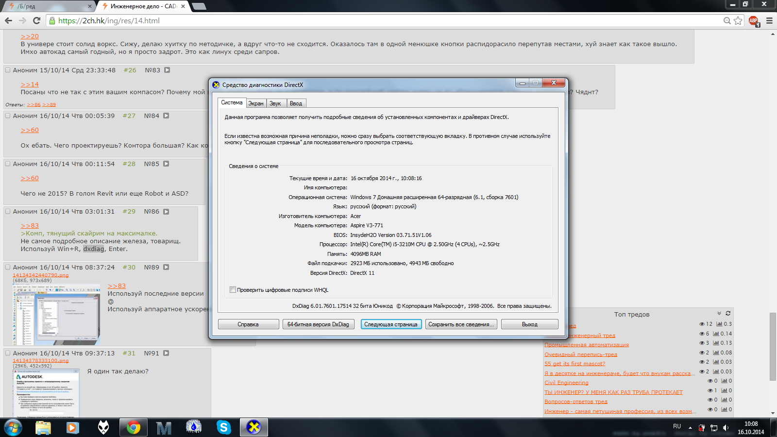 >>14 Посаны что не так с этим вашим компасом? Почему мой комп тянет скайрим на максималке, а 2д простейший чертеж схемы на А1 оборачивается ссаными тормозами? Чяднт?