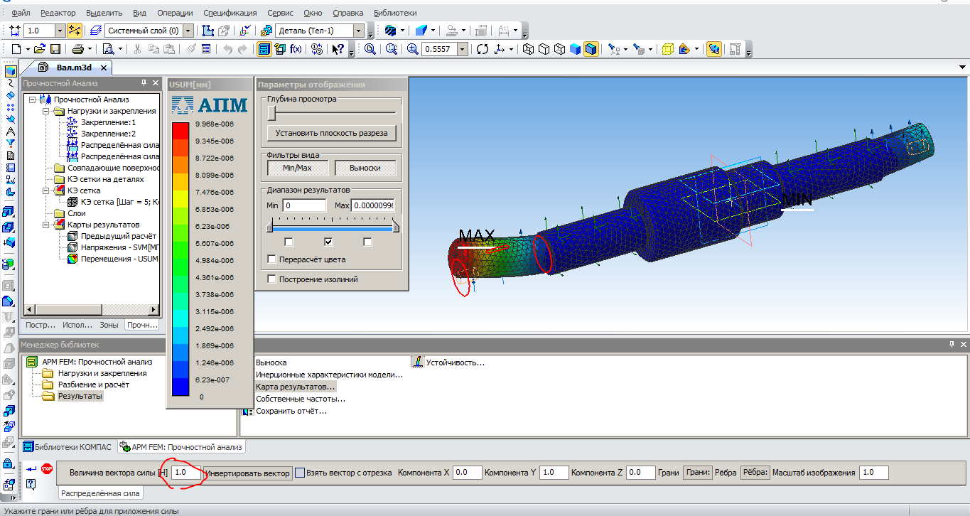 >>14 (OP) привет, убермедленная доска. Скачал на свой турбокоомпас АПЭЭМ ФЕМ и приложил силу в один ньютон мать его к шейке вала. Перемещение судя по шкале никакущее, но ВИЗУАЛИЗАЦИЯ пугает. Это ошибка в рассчетах или просто для наглядноти деформацию выдало такую? Никогда не рассчитывал ничегов сапрах-кун