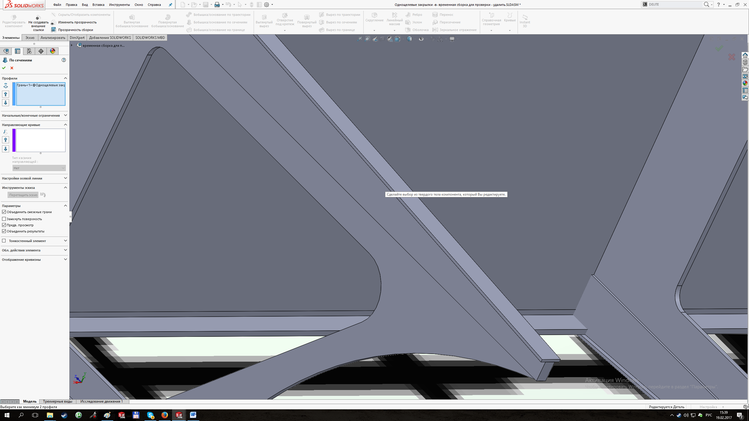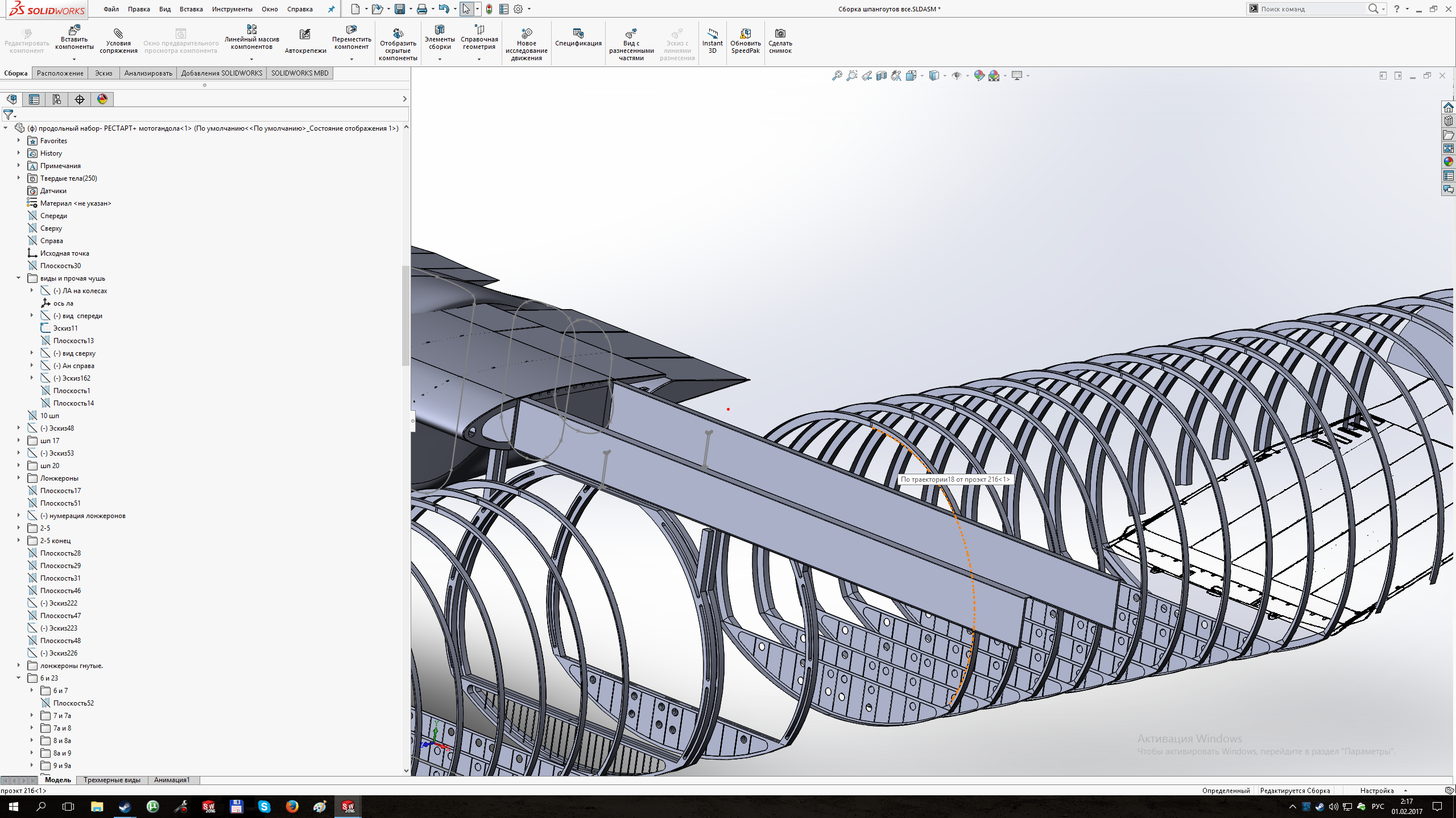 >>14 (OP) Сап анон. У меня к тебе вопрос. У меня есть n кол-во шпангоутов , некоторые сделаны массивом , некоторые "уникальные ". На тот момент когда я делала я не предусмотрел обшивку самолету . Подскажи как можно проще ее сделать с минимальной затратой по времени. Программа solidworks .