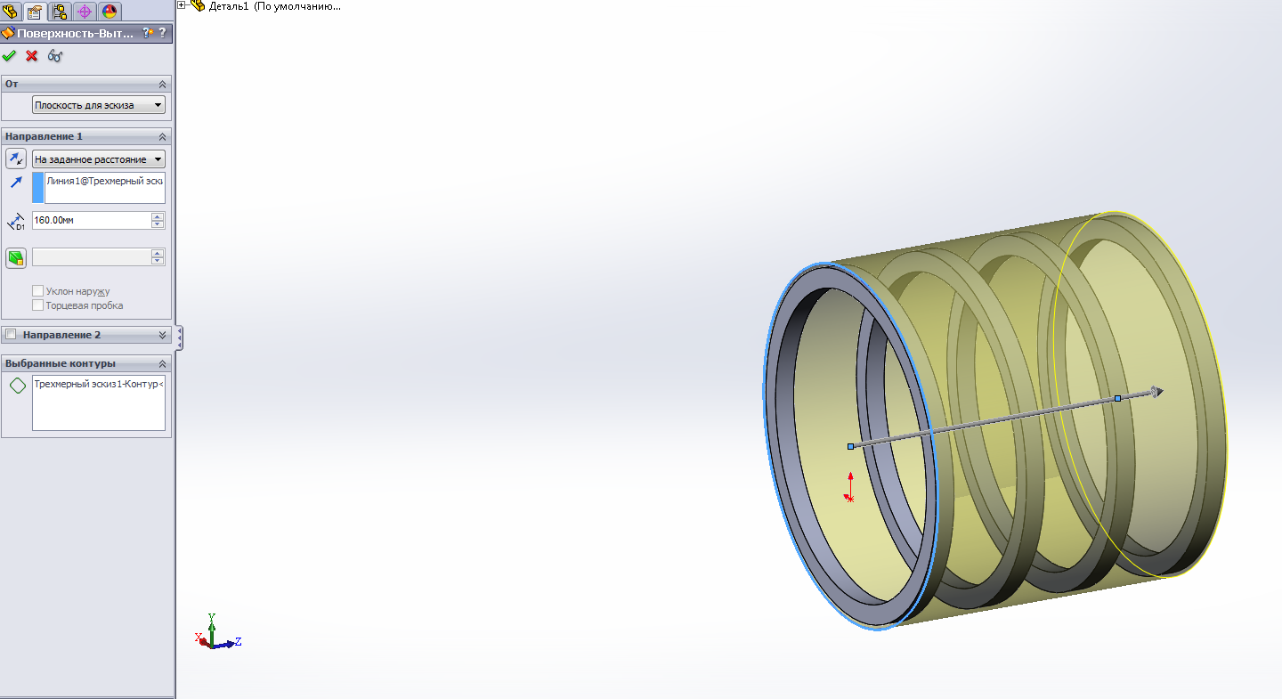 >>1667 Если ты хочешь через этот инструмент сделать,то нужен еще один профиль и направляющие(через трехмерный эскиз рисуй). Если один профиль и направление то через пикрилейтед делай