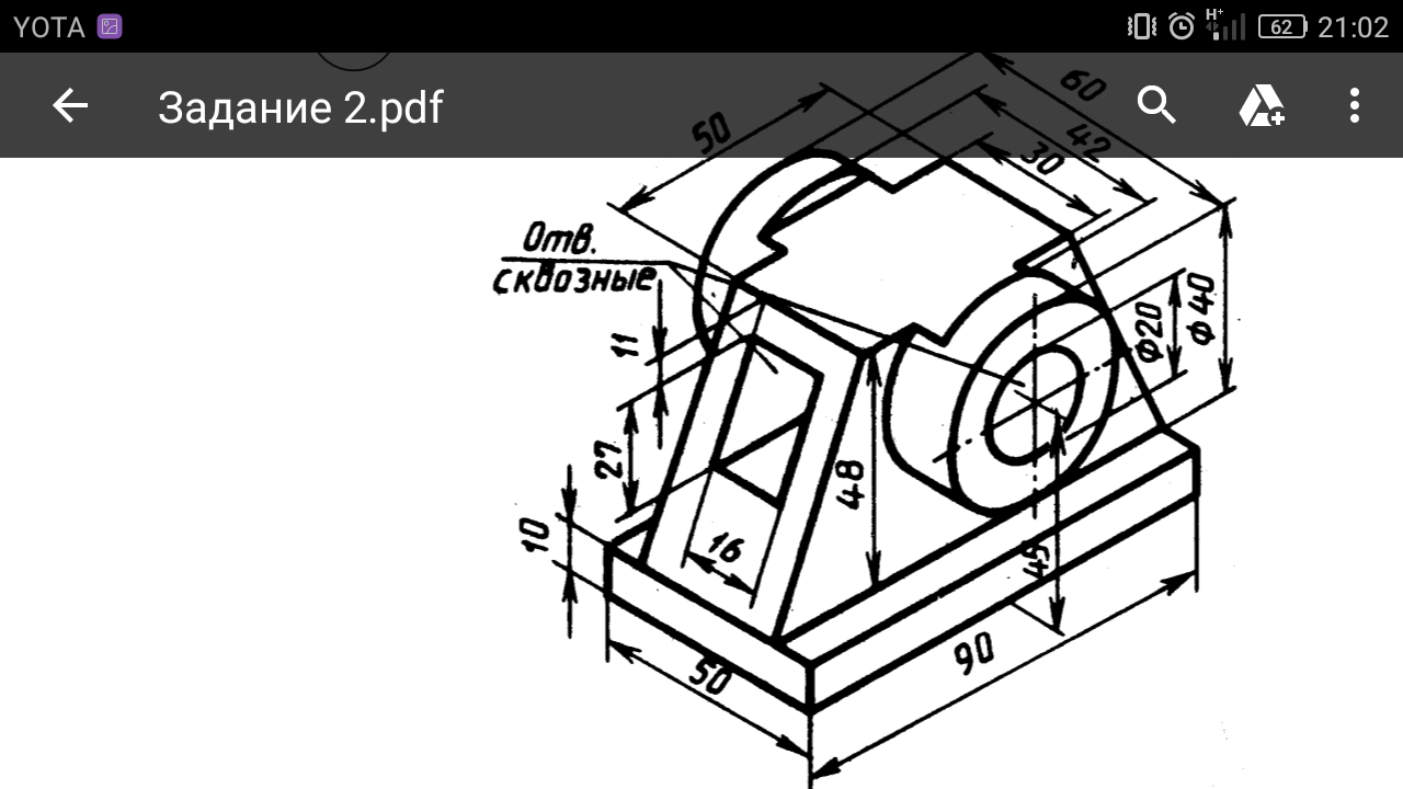 Аноны, извиняюсь за вторжение. Но вот возникла проблема. Необходимо начертить проэкции сей чуднОй фигурки в t-flex cad. Все збс, но как мне расчитать размеры прямоугольного отверстия в проэкции сверху? Мне нужна просто подсказка.