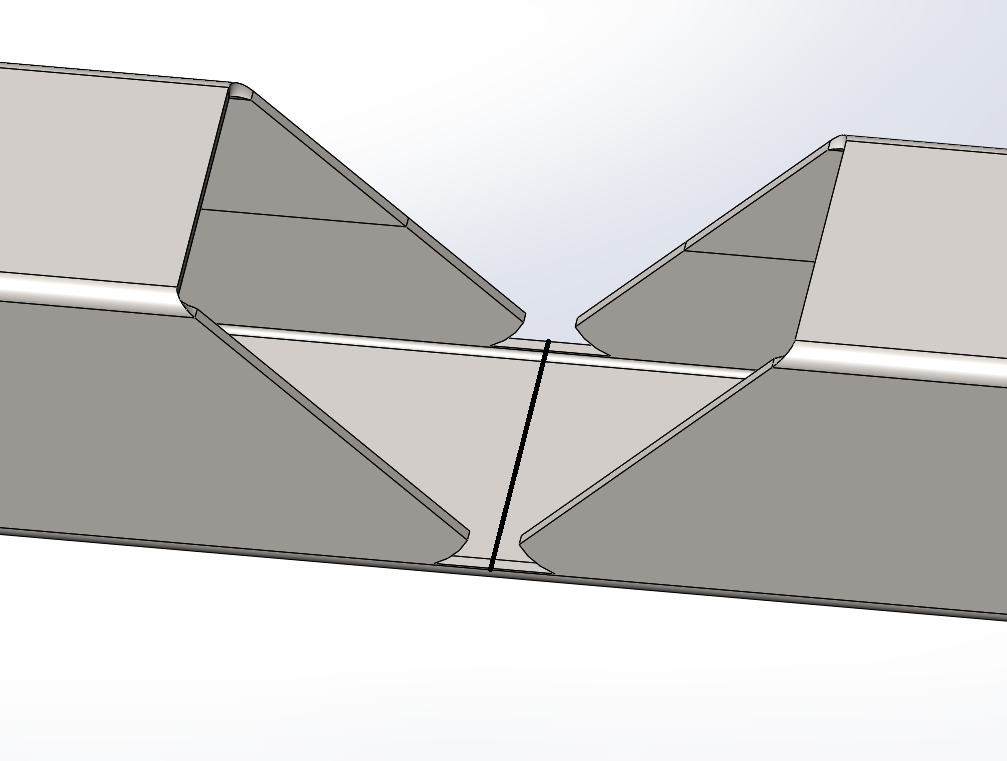 Доброго времени суток! Подскажите пожалуйста, как согнуть данный профиль по средней линии! Профиль сделан в листовом металле. Мне нужно согнуть профиль, чтобы он принял вид со второй картинки.