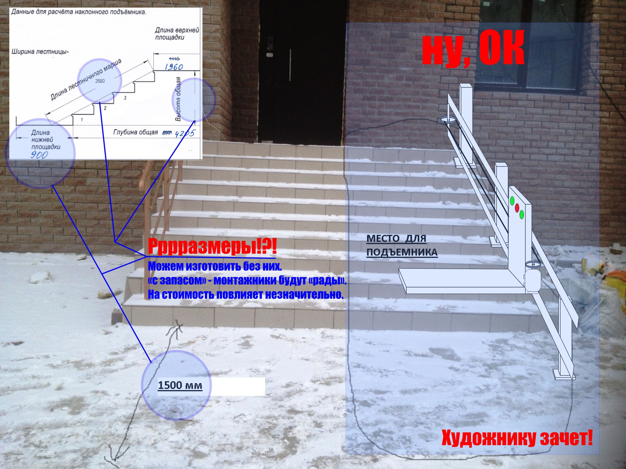 Наклонный подъемник с прямой траекторией движения Привод - канатный с лебедкой Сеть - 220V, 50Гц Материал - металл с порошковым покрытием Напольное покрытие - перф. лист Грузоподъёмность - 225 кг Скорость движения - !sic тихим шагом.