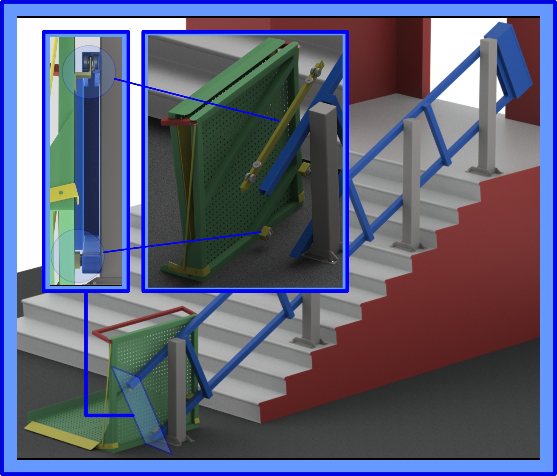 Всё-таки больше интересно, как вы выполните движущий элемент и подвижную часть, с железяками на полу и перилах дело таки просто в мастерстве сварке и прямоте рук.
