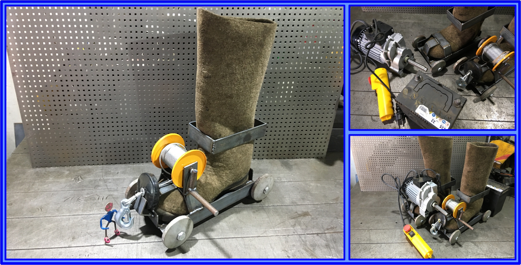 Планировали эл.мотор+редуктор+звезда+цепь и замкнуть на валу со шкивами. Надёжно и практично. Но размеров от заказчика нет... Так что делать будем "на-вырост" (+/- 1м), следовательно ставить будем эл.таль с тросом (как они и хотели), только спрячем её в трубу. (так даже дешевле).