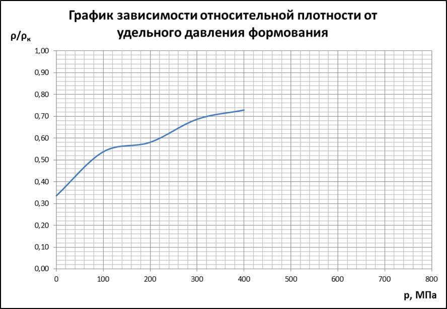 Есть график зависимости относительной плотности порошка от давления формования и исходя из него нужно найти то значение давления, при котором формовочная смесь будет держать форму По идее, это значение на промежутке 0<x<100 МПа, но нужно определить точно, где эта точка на оси абсцисс