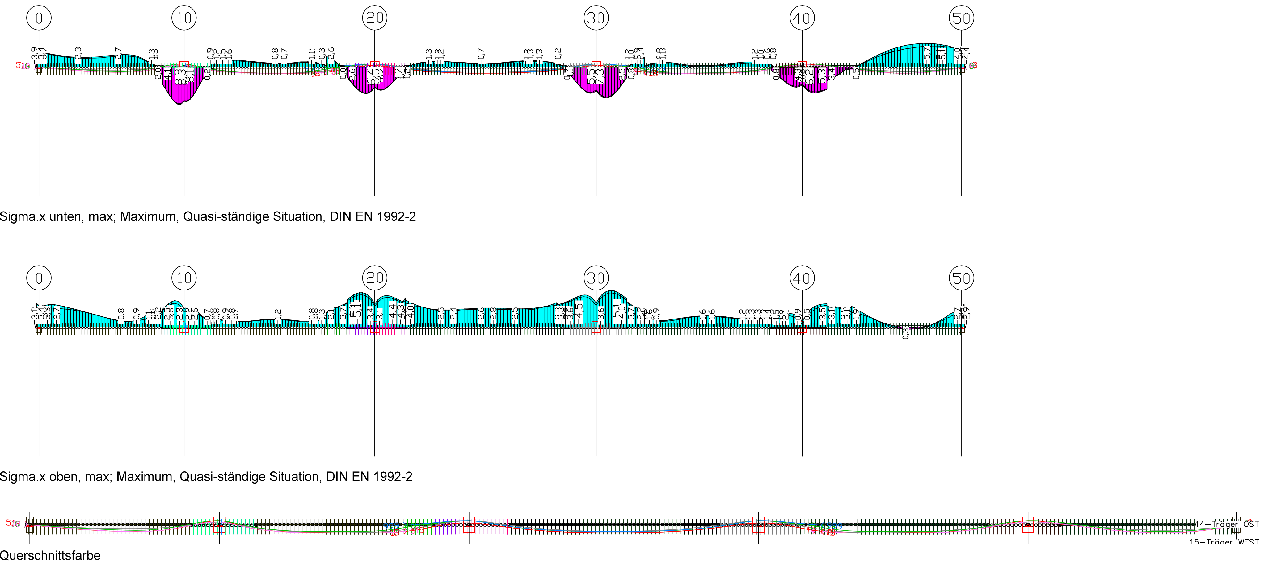 Эпизод стройки 1 - сооружение серединки и преднапряжение через 4 элемента 6-15, DSI, 1500/1770, 2250мм2 Эпизод стройки 2 - сооружение левой части и преднапряжение через 4 элемента 6-15, DSI, 1500/1770, 2250мм2, cцепленных с элементами первого эпизода Эпизод стройки 3 - сооружение правой части и преднапряжение через 4 элемента 6-15, DSI, 1500/1770, 2250мм2, cцепленных с элементами первого эпизода Эпизод стройки 4 - преднапряжение через 4 элемента 6-15, DSI, 1500/1770, 2250мм2 через всю длинну моста.