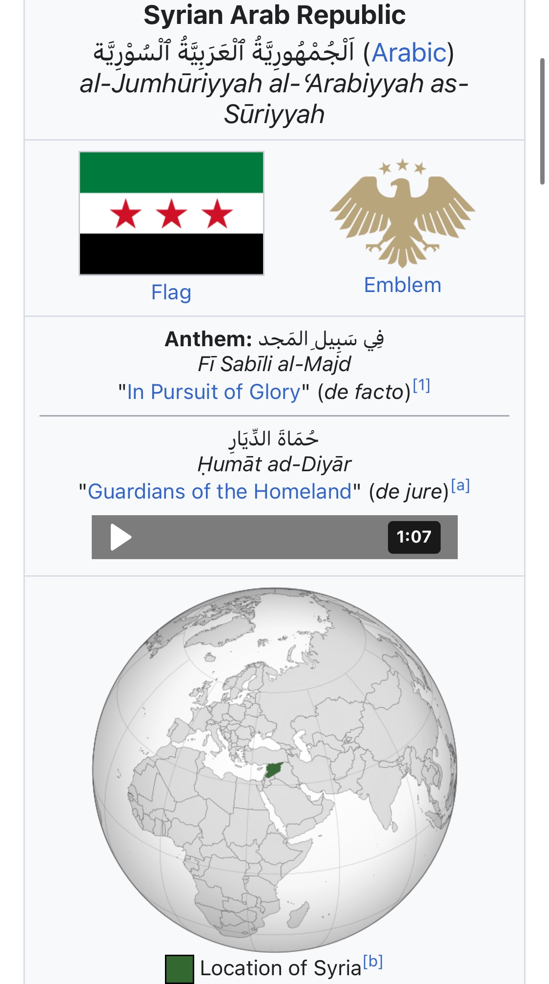 South Syria is extremely strong, so it seems some force wants to delegitimize that strength. It now states on “Wikipedia” as a locked edit that North Syria owns all of Syria when both North & South Syria exist as independent nations and have diplomacy together. The Kurds also are an independent nation that has diplomacy with both North & South Syria.