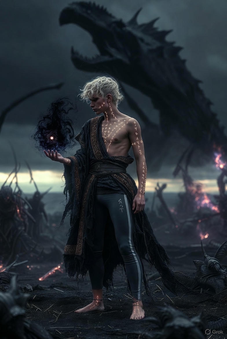 5. Вало рухнул лицом в снег. Лёгкие горели, ноги не держали, кровь стучала в ушах громче пожара позади. Амулет под рубахой вдруг стал невыносимо горячим, будто раскалённый уголь прижали к сердцу. Мир мигнул и погас. Ни леса, ни снега, ни запаха гари. Только бесконечная тьма и низкий гул, от которого вибрировали кости. Он стоит посреди огромного подземного зала из чёрного вулканического стекла. Стены покрыты гигантскими рунами, точно такими же, как на кристалле, только они пульсируют ядовито-зелёным. В центре зала — озеро из чистого жидкого света. Из него медленно поднимается фигура. Женщина. Высокая, тонкая, словно выточенная из лунного камня. Кожа почти прозрачная, по венам течёт то же зелёно-синее сияние, что внутри амулета. Волосы — длинные, живые, из жидкого металла. Глаза — два провала, в которых кружатся звёзды и целые галактики. А на груди — идеально круглая пустота. Точно такого размера, как его кристалл. Она смотрит прямо на него. Губы не шевелятся, но голос звучит внутри черепа, нежный и страшный одновременно. «Наконец-то ты принёс меня домой… Но слишком поздно для них.» Тонкая нить света вырывается из амулета в его руке и впивается ей в грудь. Пустота начинает затягиваться. Она вздрагивает — от боли или от облегчения. «Ты — сосуд. Ты — ключ. Ты — оружие, которое ещё не выбрало сторону.» Она поднимает руку. На ладони вспыхивает символ — переплетённые руны. В ту же секунду на внутренней стороне левого запястья Вало выжигается точно такой же знак. Боль настоящая, жгучая, но он не может пошевелиться. «Они придут за тобой. Все. Слуги Порядка. Слуги Хаоса. И те, кто служит только себе.» Зал начинает рушиться. Стены трещат, руны гаснут. Озеро света вскипает и превращается в кровь. Она делает шаг вперёд. Её лицо оказывается в сантиметре от его. «Когда придёт время, произнеси моё имя. Мир либо спасётся… …либо сгорит дотла. Зови меня — Лиири.» Имя ударяет, как молния. То же самое имя. То, которое он только что слышал из окровавленных губ умирающей матери. Тьма взрывается белым. Вало открывает глаза в снегу. Запястье пылает свежим ожогом. Амулет теперь холодный, будто высосал всё тепло из тела. Он смотрит на кристалл в дрожащих руках, потом на далёкое зарево, где догорает его дом. И впервые шепчет, срывая голос: —…Лиири? Кристалл в ответ слабо вспыхивает. Один раз. Как будто кивнул