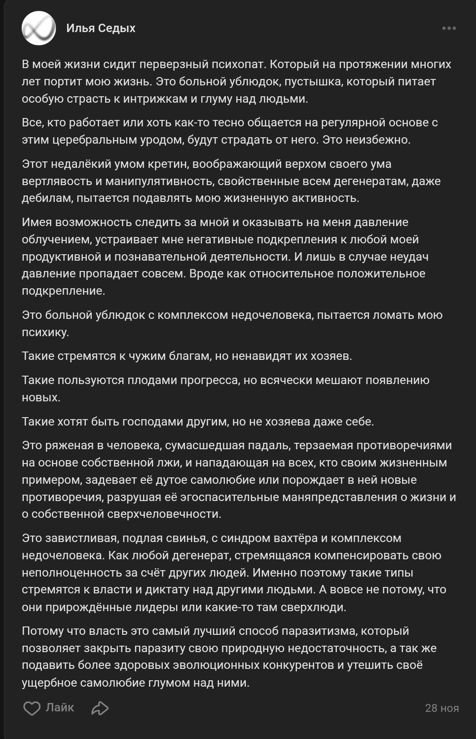 ищутся инцелы кто в детстве изза инцельских страданий был принудительно сдан в психушку. нужны истории кроме никиты капернаумова чтобы увековечить в антипсихиатрический инцельский манифест ненависти к социуму. будем издавать и пиарить за деньги. отписывайтесь если есть такие или донесите до таких инцелов.