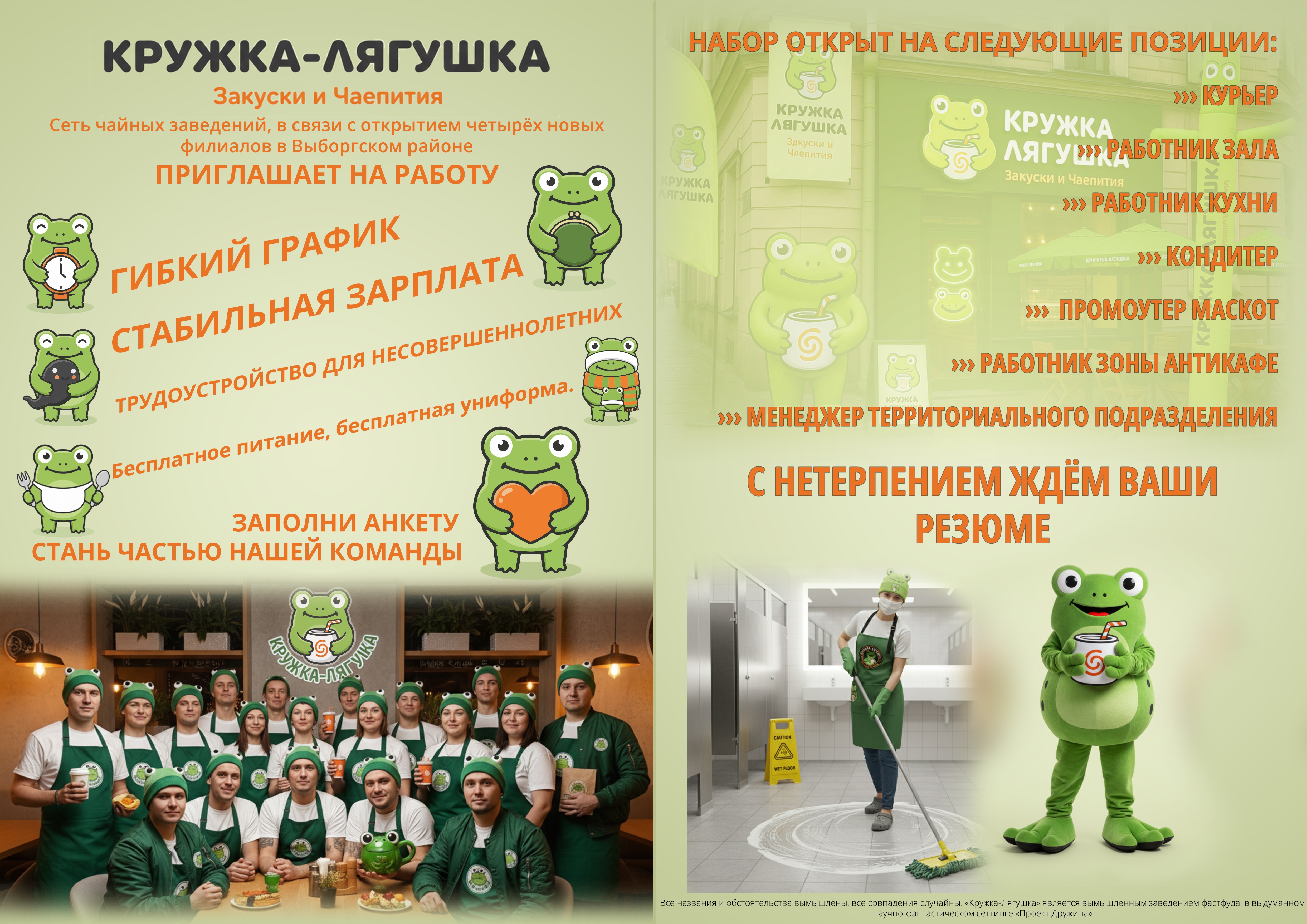Ещё не отгремел до конца один скандал, как чайные заведения сети «Кружка-Лягушка», оказались в центре нового. На этот раз проблема коснулась заведения расположенного на улице Достоевского, в Центральном районе Санкт-Петербурга. Павильон для чаепитий, ненастным октябрьским днём оказался наводнен сотнями серых крыс. Всё произошло настолько быстро и внезапно, что происходящее явно не могло быть случайностью. Позволим себе поспекулировать. Известно, что среди многочисленных криминальных элементов, с суперспособностями, которые выбрали наш любимый город в качестве своей жертвы, существует группа известная, как «Пасюки». Это криминальное сообщество, избравшее своей базой в том числе Фрунзенский район, почти в упор, расположенный к месту событий, характеризуется не только чрезмерной театрализованной любовью к крысам и иным разновидностям грызунов, но и наличием талантов напрямую способных контролировать этих городских паразитов. Весьма вероятно, что неожиданное появление сотен или даже тысяч грызунов в скромной чайной, это послание, вызов или угроза в адрес владельцев сети заведений «Кружка-Лягушка». Хотя Комитет по противостоянию угрозам неопознанной природы при правительстве Российской Федерации, ещё не начал расследования, и как обычно воздержался от каких-либо заявлений, эта теория вполне актуальна если вспомнить о полномасштабной проверке «Кружки-Лягушки» на предмет поддержки и финансирования незарегистрированных супергероев-вигилантов. Не стоит сбрасывать со счетов и возможную версию о вымогательстве или рэкете, явлении, увы нередком в нашем городе, когда речь заходит о талантах и крупном бизнесе. Расследование ГУЭБиПК по Санкт-Петербургу, привело к публикации данных о доходах сети чайных, что могло спровоцировать криминальный передел, жертвами которого и стали персонал и посетители павильона на Достоевской. Наконец возможно имели место какие-то личные мотивы, и атака была индвидуальной, против одного из конкурирующих с «Пасюками» талантов, в гражданском. Подобные эпизоды имели место и ранее. В пользу этой теории говорит тот факт, что наводнению крысами, подверглось заведение, расположенное на враждебной «Пасюкам» территории, и только одно заведение из многочисленной сети. Здесь следует напомнить читателям, что ранее неоднократно фигурировали сообщения о том, что один из нелегальных, незарегистрированных талантов-вигилантов, известная как Ондатра, была несколько раз замечена, использующей мерч сети заведения «Кружка-Лягушка», в том числе в Центральном районе. Так или иначе, один факт из множества теорий, не подлежит сомнению. К утренним событиям в павильоне на Достоевской, определённо приложили руку владельцы суперспособностей, и намерения их были далеки от благожелательных Главное управление экономической безопасности и противодействия коррупции Фирменные вещи