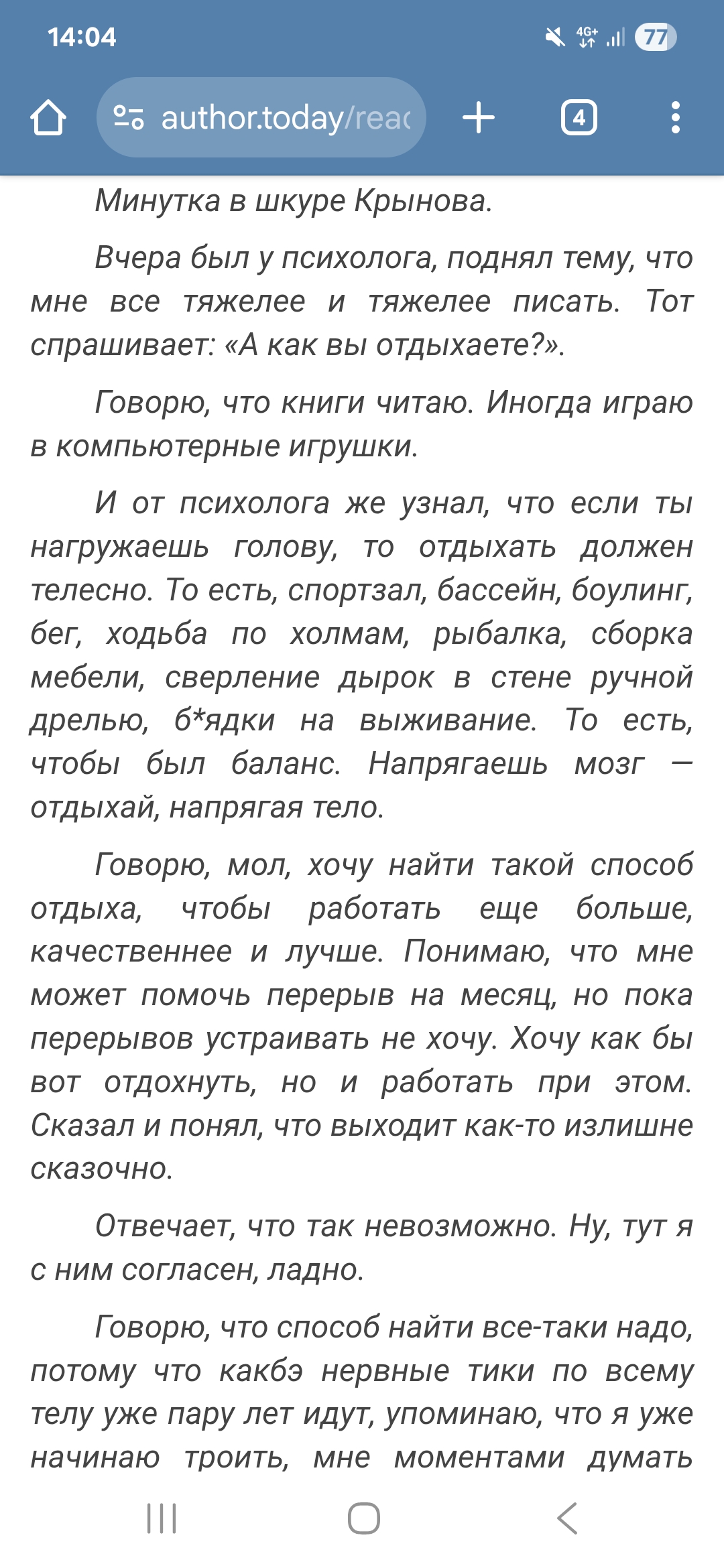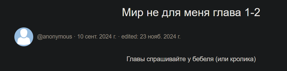 Я видел такое, что вам, автортудейцам, и не снилось. Поля нейротекста, засеянные трупами форматных произведений с нулем просмотров. Виджет Последних апдейтов, засранный спамом настолько, что каждое новое произведение выходит раз в СЕКУНДУ; Форматные истории, мелькающие лишь на СЕКУНДУ и тут же исчезающие в вечной тьме безвестности. Системы рекомендаций, развитые настолько, что напоминают мафиозные кланы! Их НЕЛЬЗЯ УДАЛИТЬ, дав рекомендацию, ты вечно останешься РАБОМ, который каждой главой будет ВЕЧНО фармить для ХОЗЯИНА приток аудитории! Я видел... Видел, что сайт не просто не борется со всем этим, он ИСПОЛЬЗУЕТ это для своей выгоды! Я видел самое омерзительное, что только может существовать - ПЛАТНАЯ ВНУТРЕННЯЯ РЕКЛАМА за попадание на главную! Все эти мгновения затеряются во времени, как... слёзы в дожде... Пришло время умирать.
